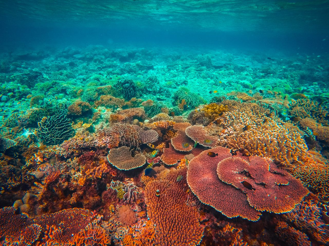 There might be some seaweed near the beach, but the further you go, the more fish and coral reefs you see. If you go far enough, you will encounter a drop-off cliff where you can spot a bigger school of fish and more colorful coral reefs all around the area.