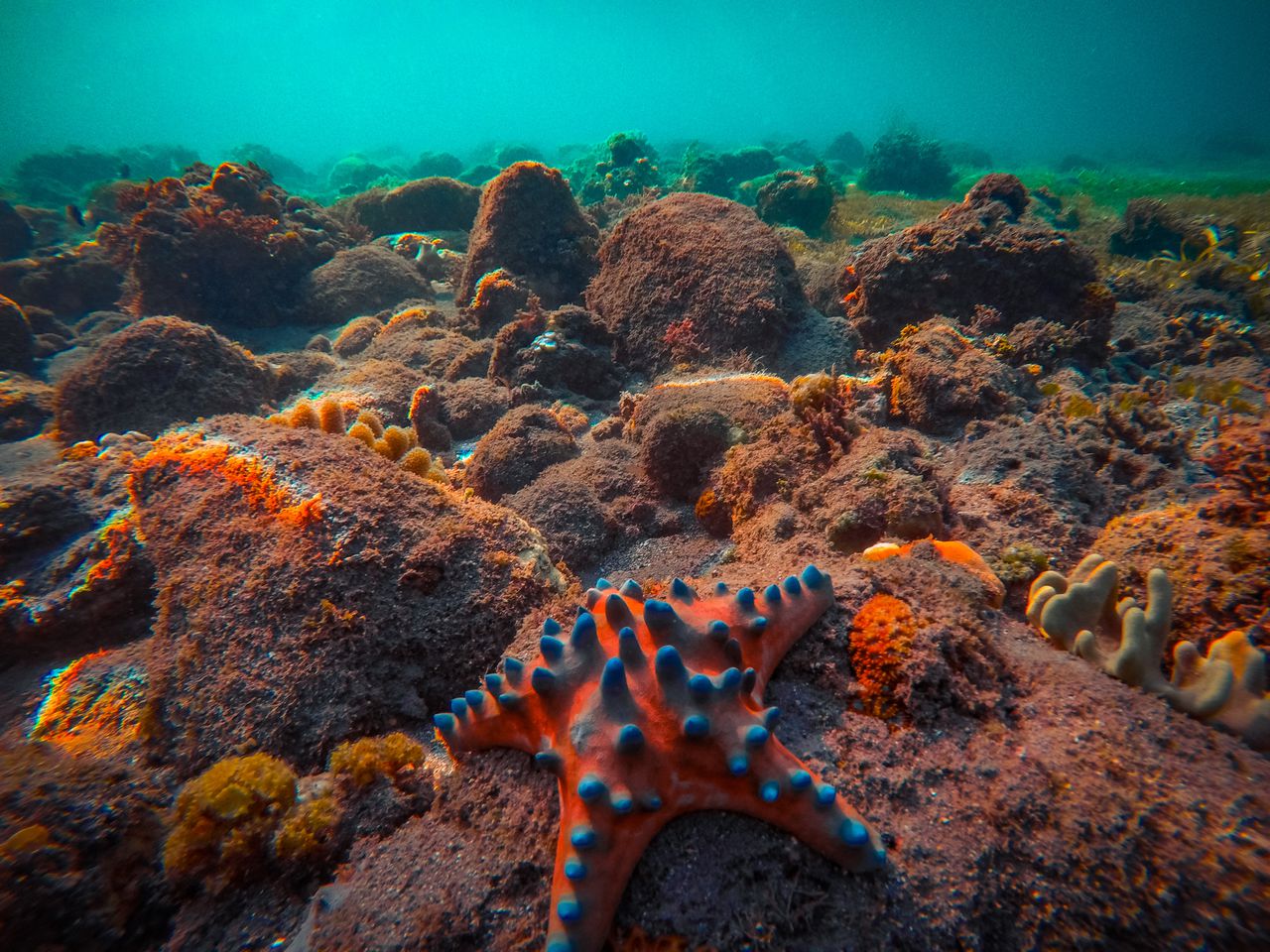 You will come across many horned starfish along the coast of Beloi beach. They comes in many colors, some more bad ass than the others.