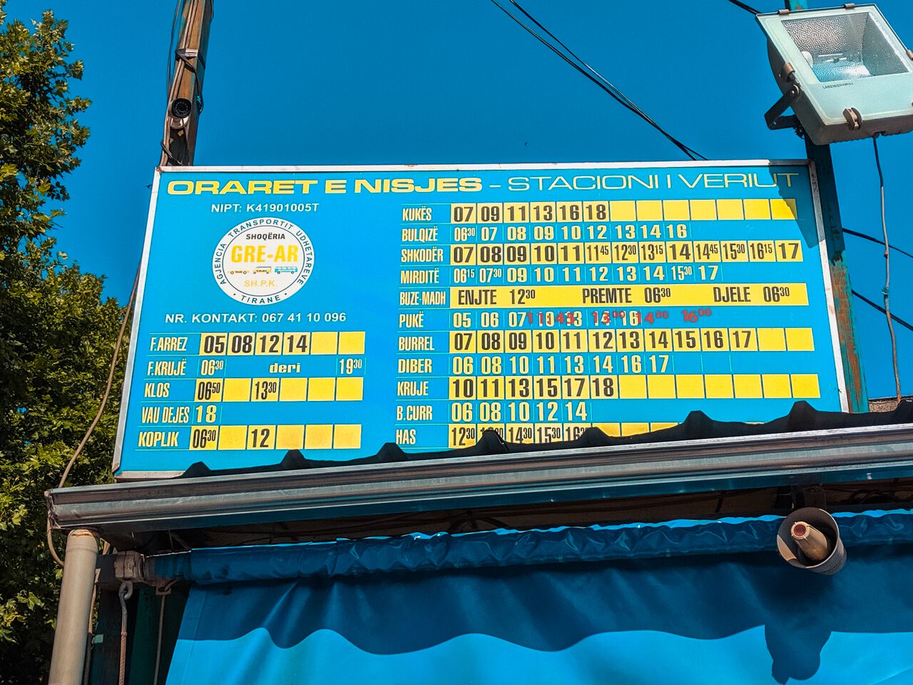 To get to Kruje, you will have to first get to the Northward Bus Station either by walking or taking a taxi. From there, you can take a bus directly to Kruje for 150 LEK. To make it to Kruje and back in one day with time to spare, I would recommend getting on either the 9 AM or 10 AM bus and returning on a 3 PM bus.