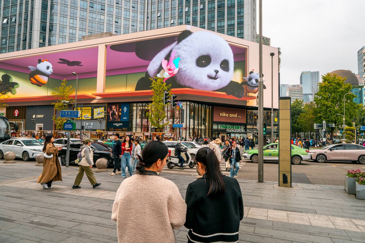 The area is always lively, with crowds of locals and tourists, bright neon signs, and a vibrant atmosphere that perfectly captures Chengdu’s urban energy. Here, you can also see the famous panda climbing a building art installation, as well as the massive LED screen that makes everything look 3D. It’s definitely a cool sight to experience.