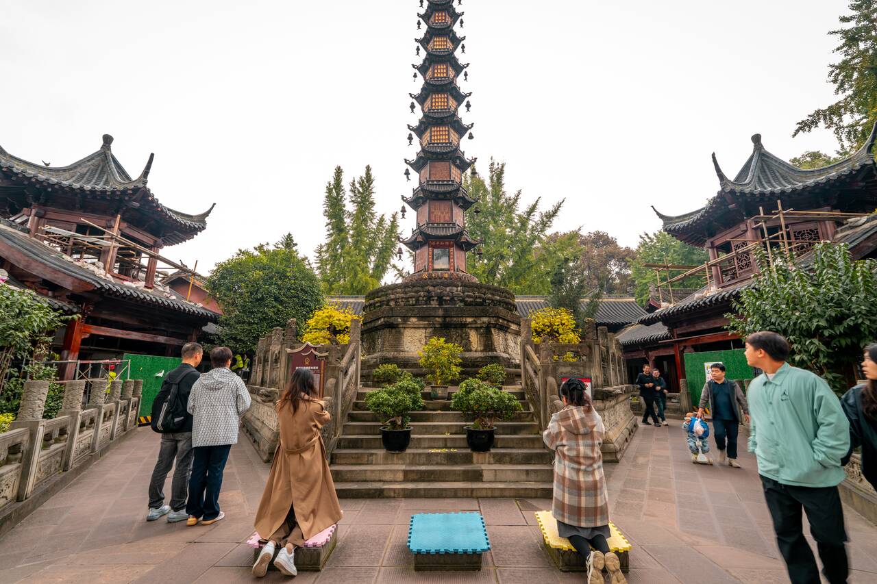 Wenshu Monastery is one of the oldest and most important Buddhist temples in the city, dating back more than 1,400 years to the Sui Dynasty (around 605–617). It has been destroyed and rebuilt in different styles throughout its history, but nowadays, the temple’s architecture is typical of classical Chinese Buddhist temples, with a sequence of halls aligned along a central axis, leading to the main Buddha hall and the sutra library.