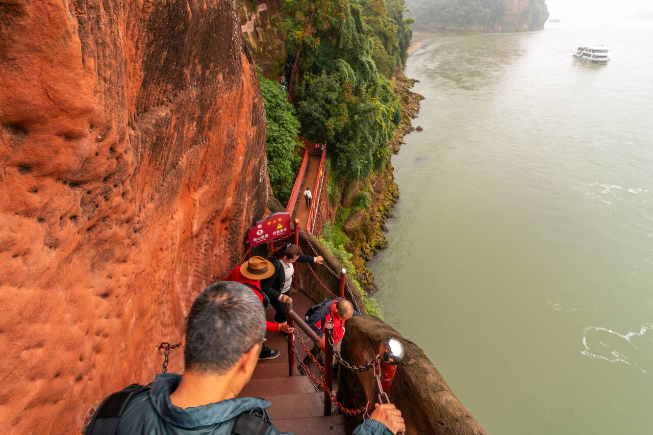 Which is why you can choose whether to take a boat and see the Leshan Giant Buddha from the river, which will give you a great sense of the true scale of the statue as well as see some hidden stone carvings on cliffs that you can only see from the boat, or you can hike around the Buddha statue and down to its foot. You can do both if you have the time.