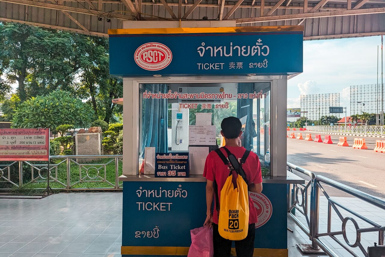 Proceed through the Lao border on foot and pay the small exit fee (usually between 0–200 THB). Then, take the 35 THB shuttle bus across the bridge into Thailand. Once you arrive, head over to this bus company office across from the 7-Eleven, where you can purchase a ticket (~200 THB) and catch the next bus either to Udon Thani Airport or Udon Thani Bus Station for your onward journey to Bangkok.