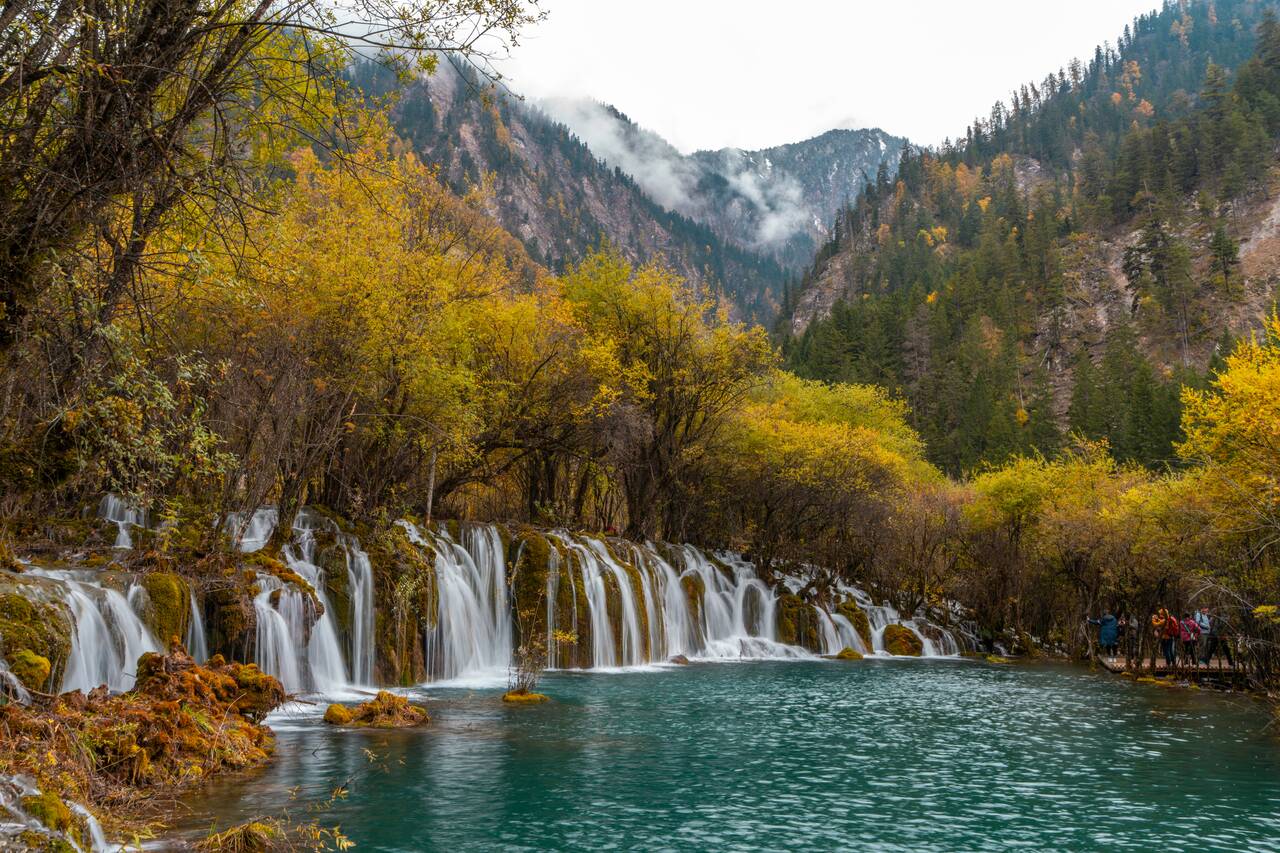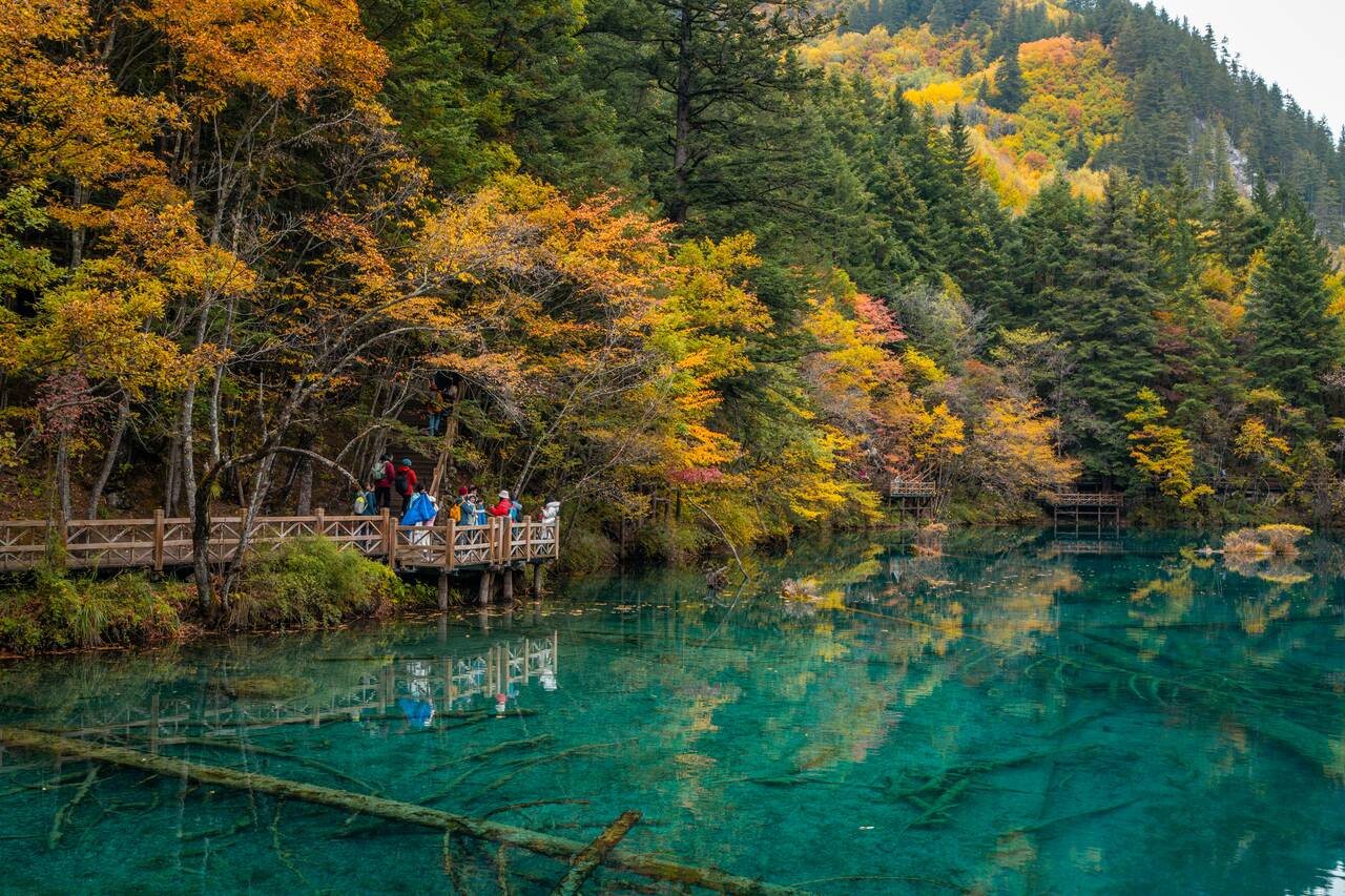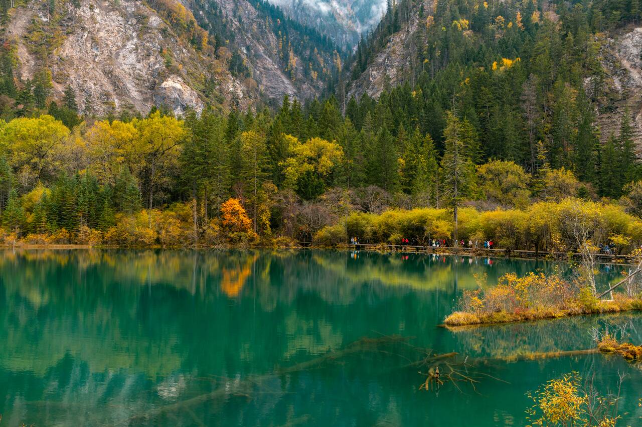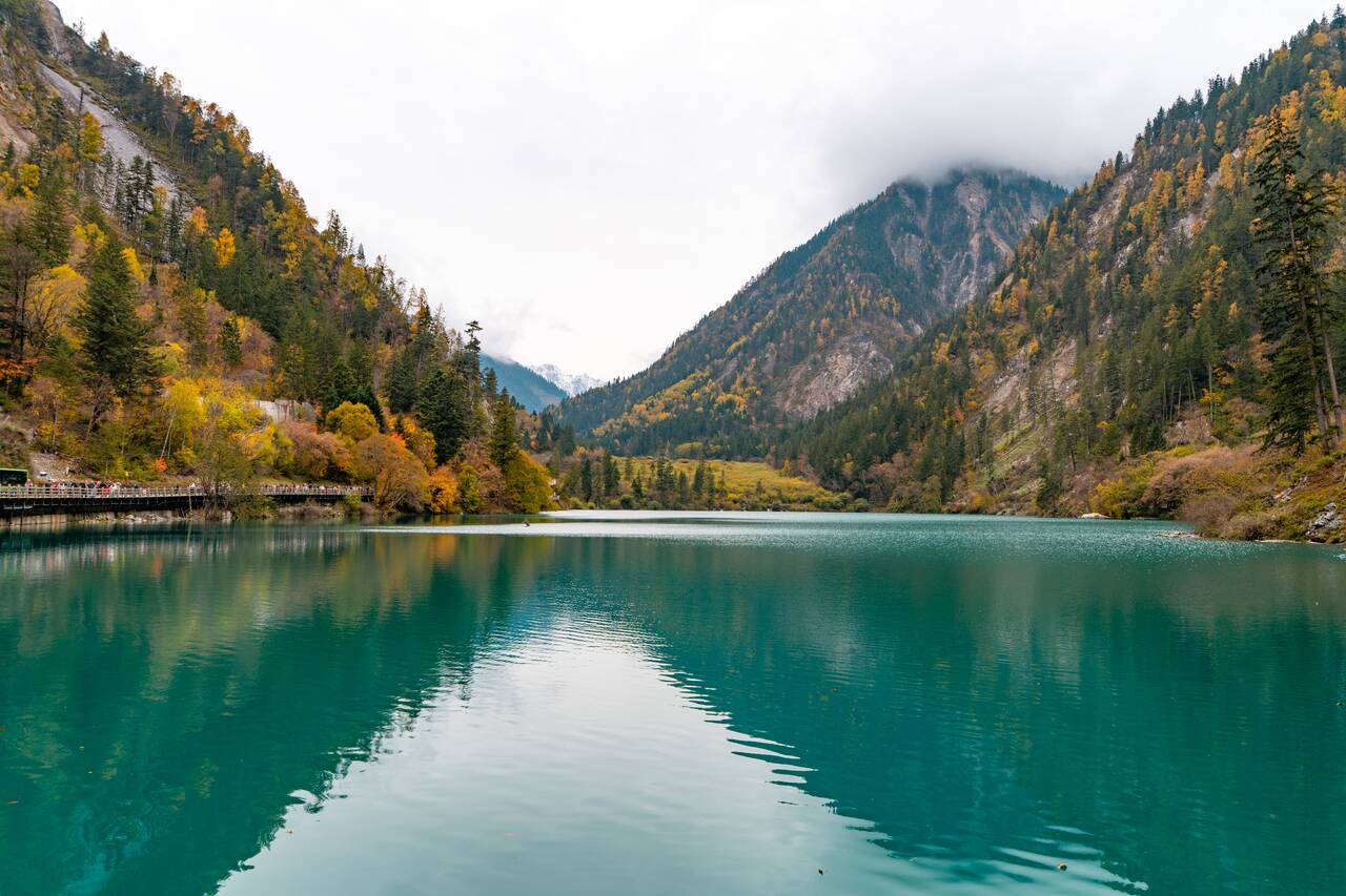 The best time to visit Jiuzhaigou is generally from mid-September to early November, when the autumn foliage transforms the valley into a palette of red, gold, and orange that reflects beautifully in its turquoise lakes. During this period, the weather is crisp and clear, which makes the colors of the lakes stand out even more, especially with the golden leaves and trees surrounding them.
