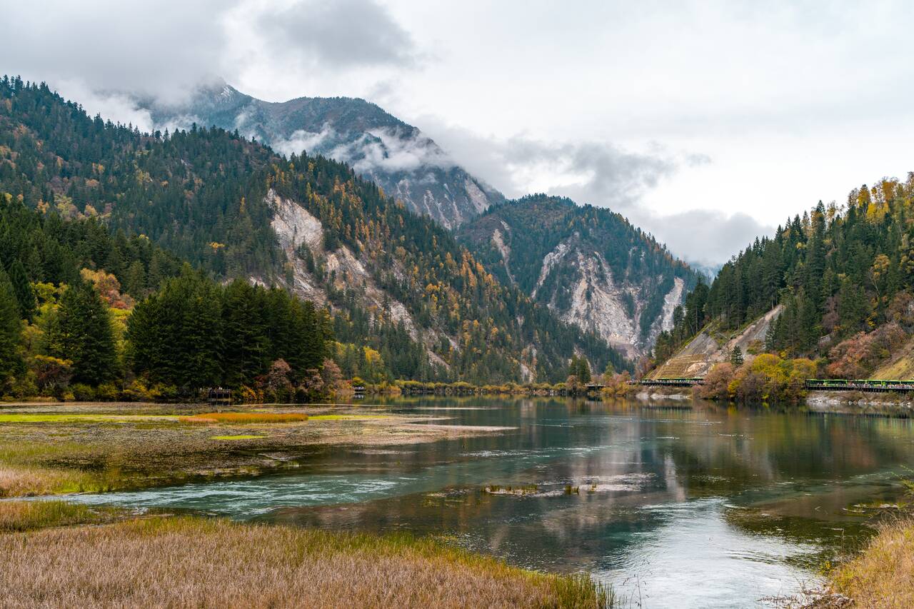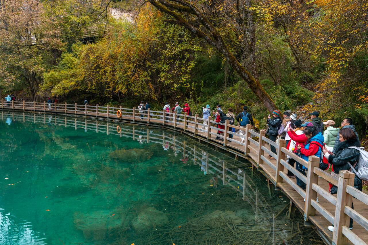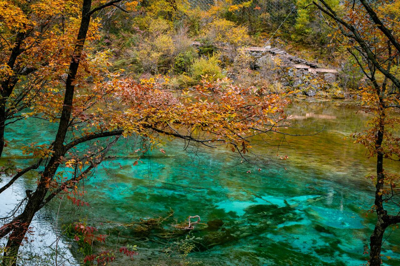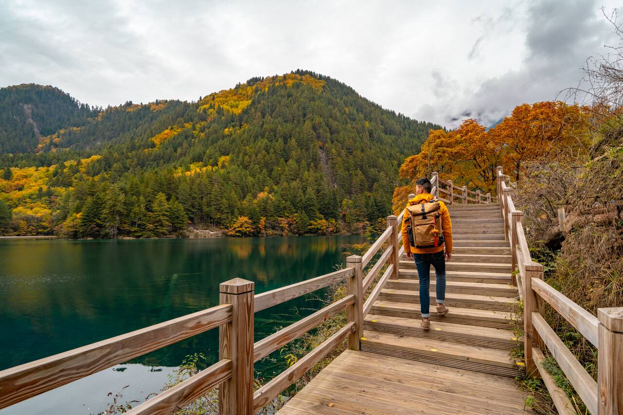 The best time to visit Jiuzhaigou is generally from mid-September to early November, when the autumn foliage transforms the valley into a palette of red, gold, and orange that reflects beautifully in its turquoise lakes. During this period, the weather is crisp and clear, which makes the colors of the lakes stand out even more, especially with the golden leaves and trees surrounding them.