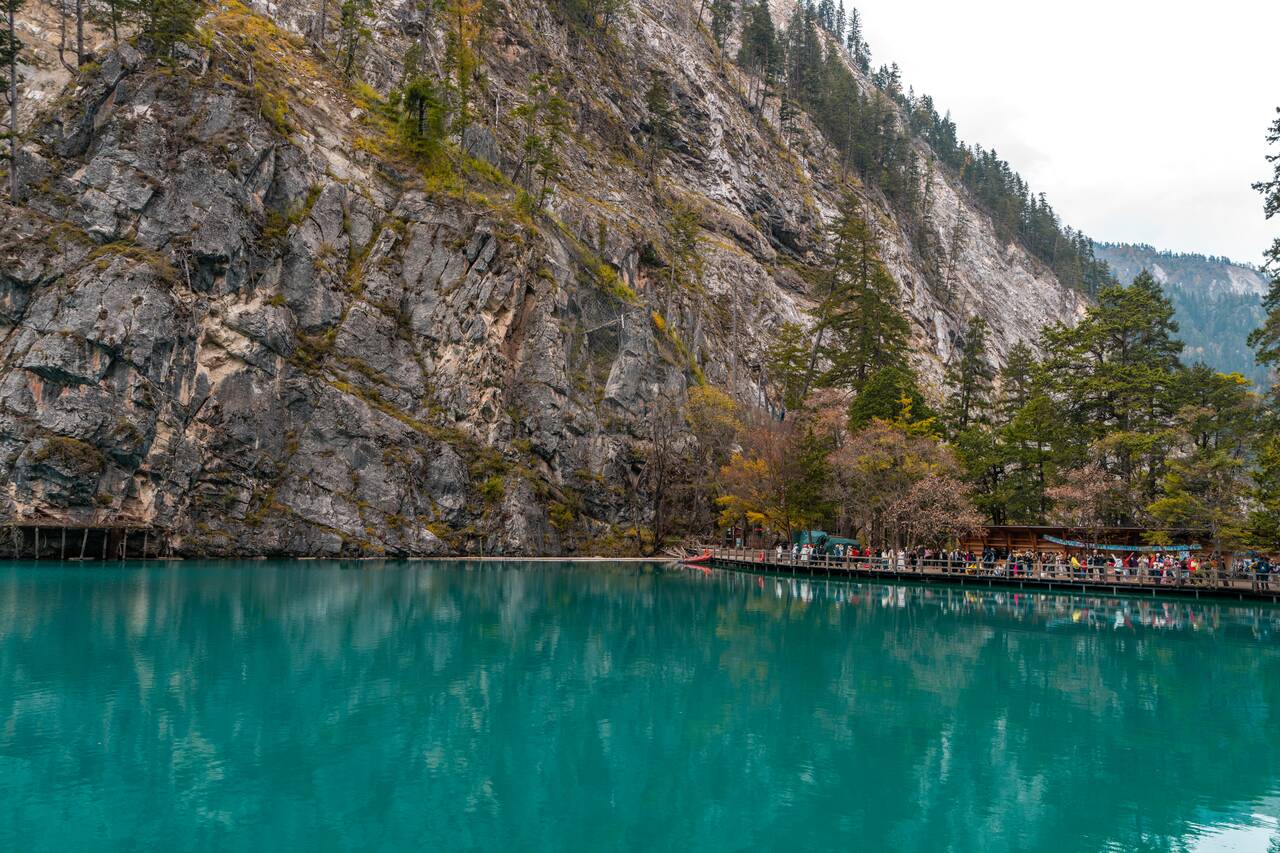 The lake gets its name from local stories that say giant pandas once came here to drink, forage, and play. There is a rounded white rock in the water with black markings that vaguely resemble a panda’s face. Whether or not the stories are true, you will likely not see any pandas here today, especially with so many tourists visiting every day.