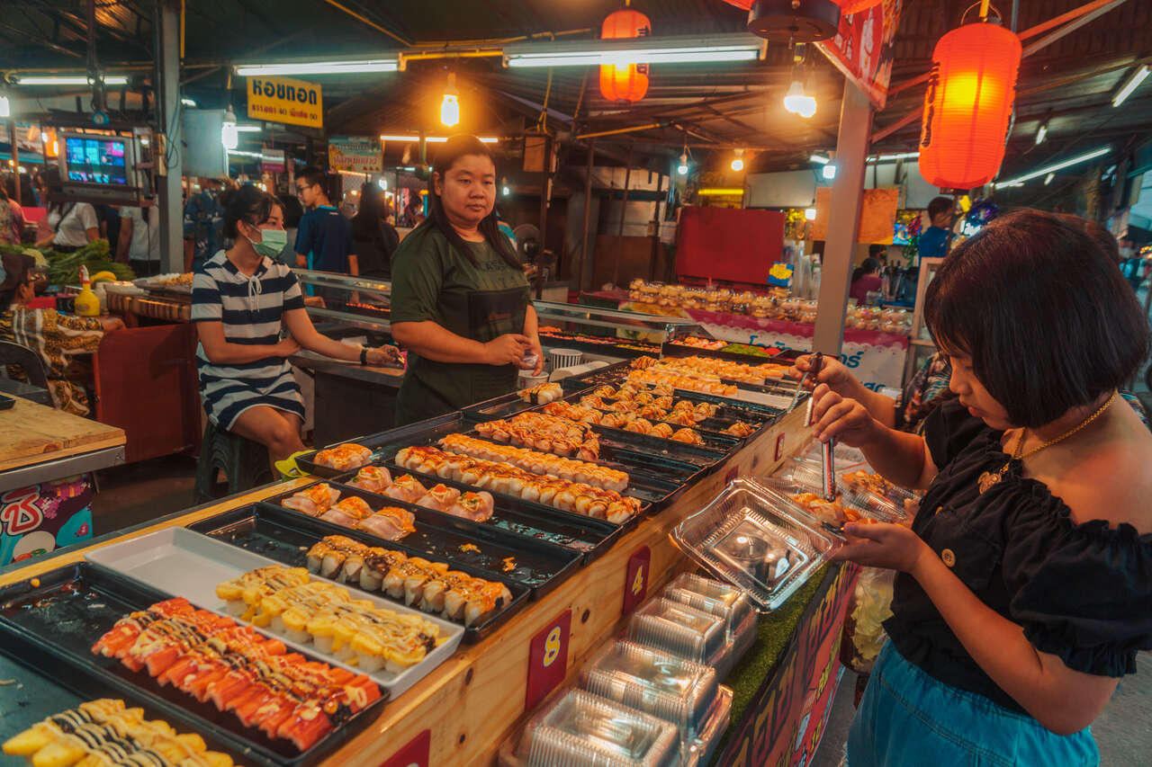 You can bike to the Night Plaza at around 6 PM, and you will find a bustling mix of fresh food and street food market that you can indulge yourself in. Be sure to try things like fried dumplings, Phat Thai, Hoi Tod (fried mussels), etc.