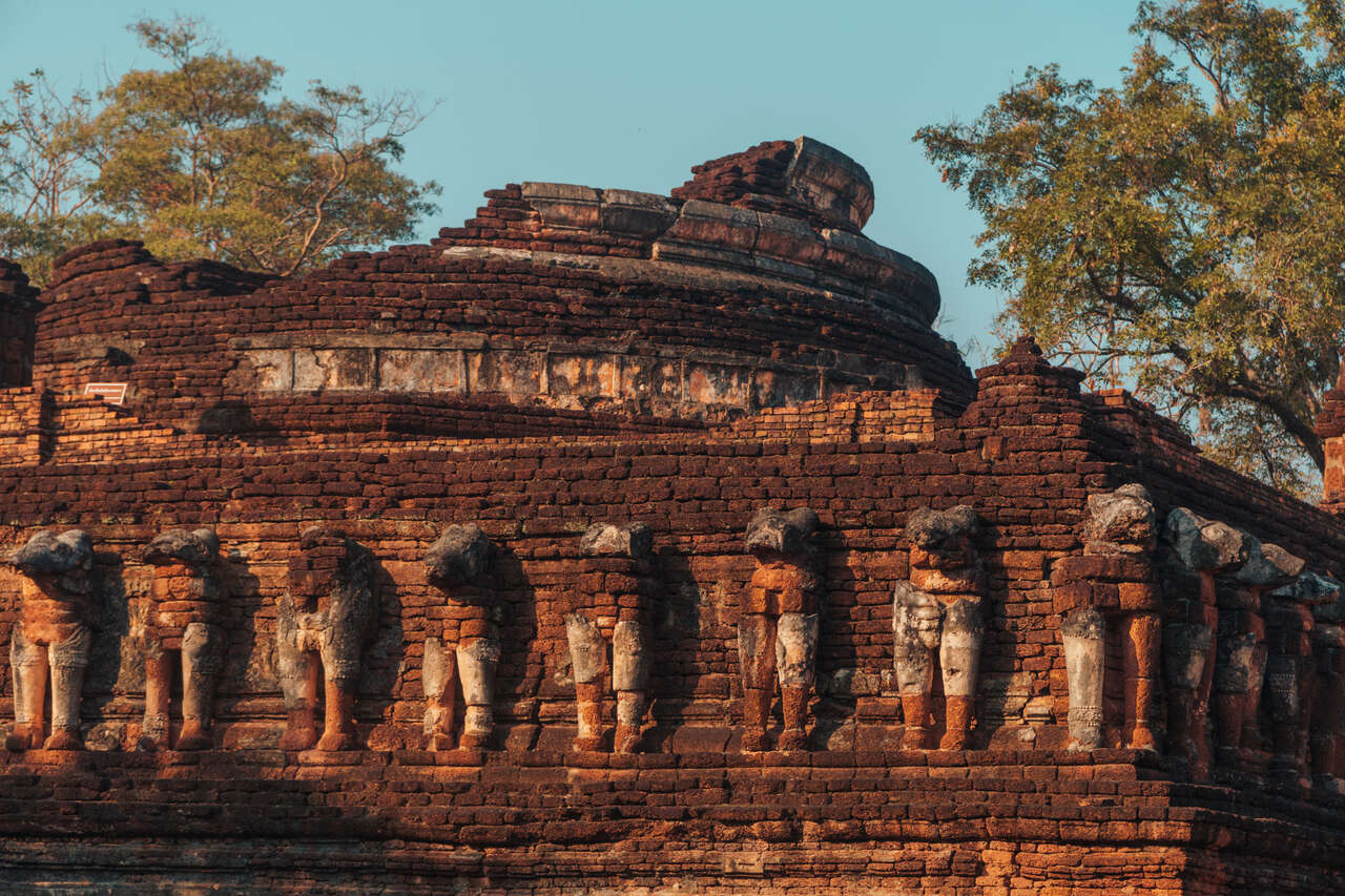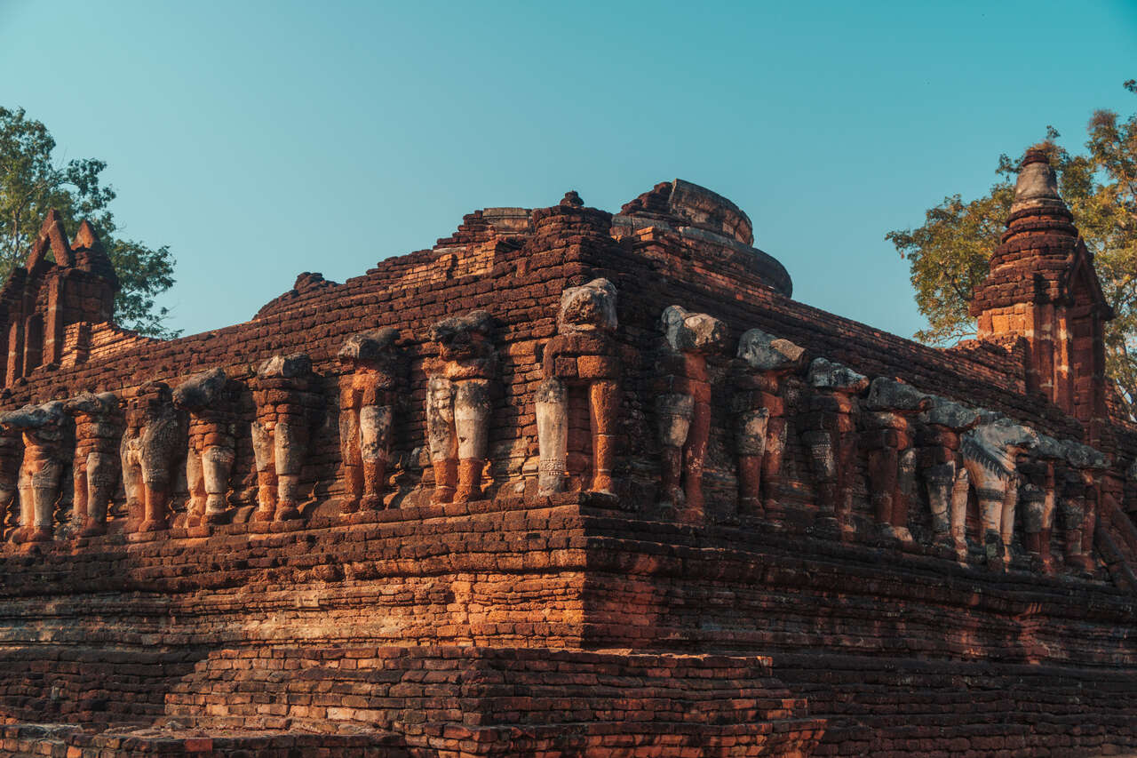 The most prominent feature of the temple is the statues of elephants that seem to be carrying the entire temple on their backs at the base of the chedi. While most of the statues are badly damaged, there are a few left that you can see the fine decorations on them.