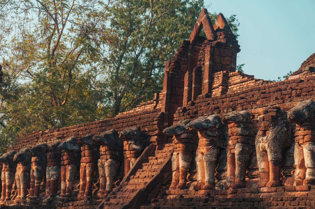 One of my favorite temples from the northern zone of Kamphaeng Phet Historical Park is Wat Chang Rob, which translates to the Temple Surrounded by Elephants. As you guessed it, the temple is, in fact, surrounded by elephant statues at its base.