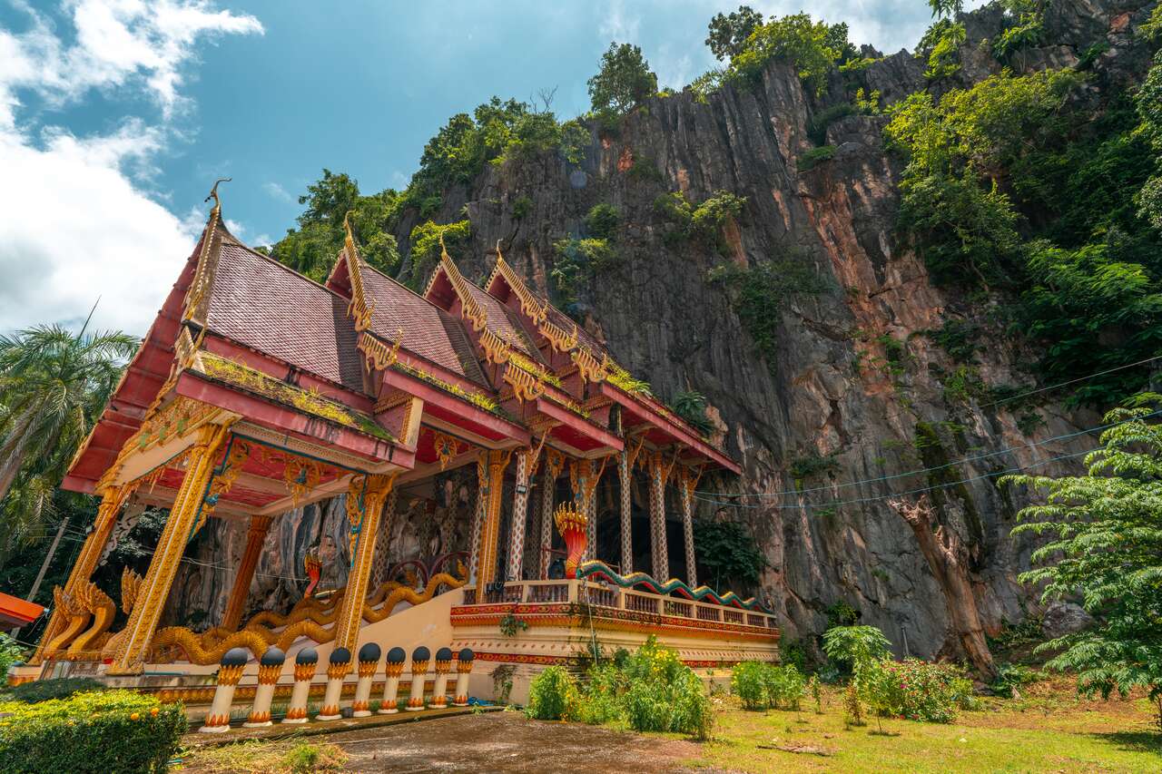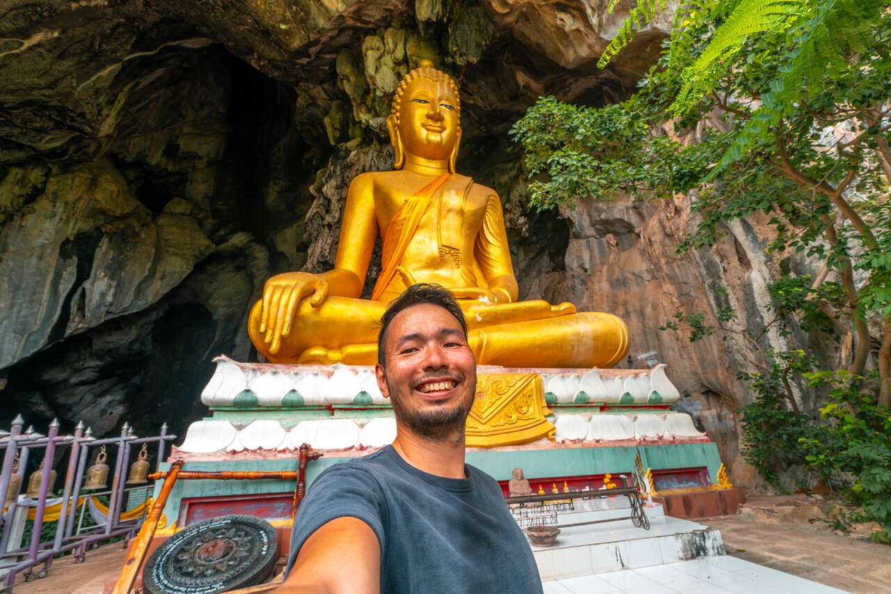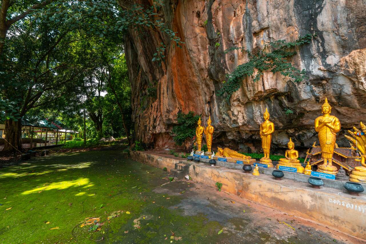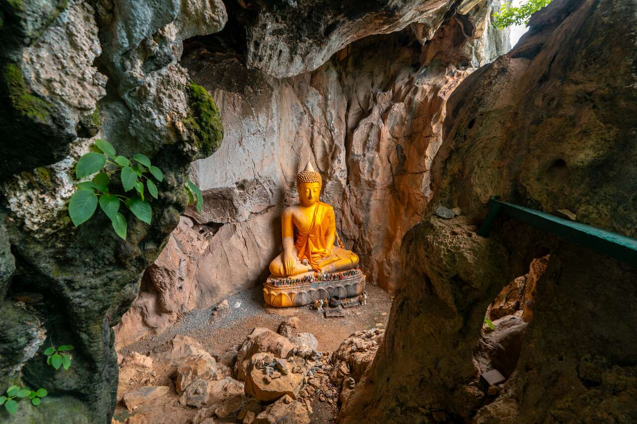 Next, we visit Wat Tham Suwannakhuha, another beautiful temple built into the side of a limestone cliff, but this time at ground level, unlike the other cave temples on this list that are perched high up in the mountains.