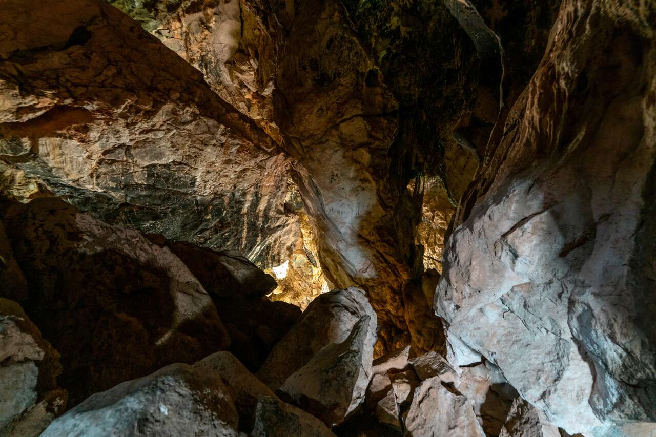 You can walk down and explore some of the caverns here. They are illuminated with lights, and the trail is well marked, so as long as you stay on the main path, there is nothing to worry about. Inside, you will find all kinds of fascinating rock formations, stalactites, and stalagmites in a variety of shapes.
