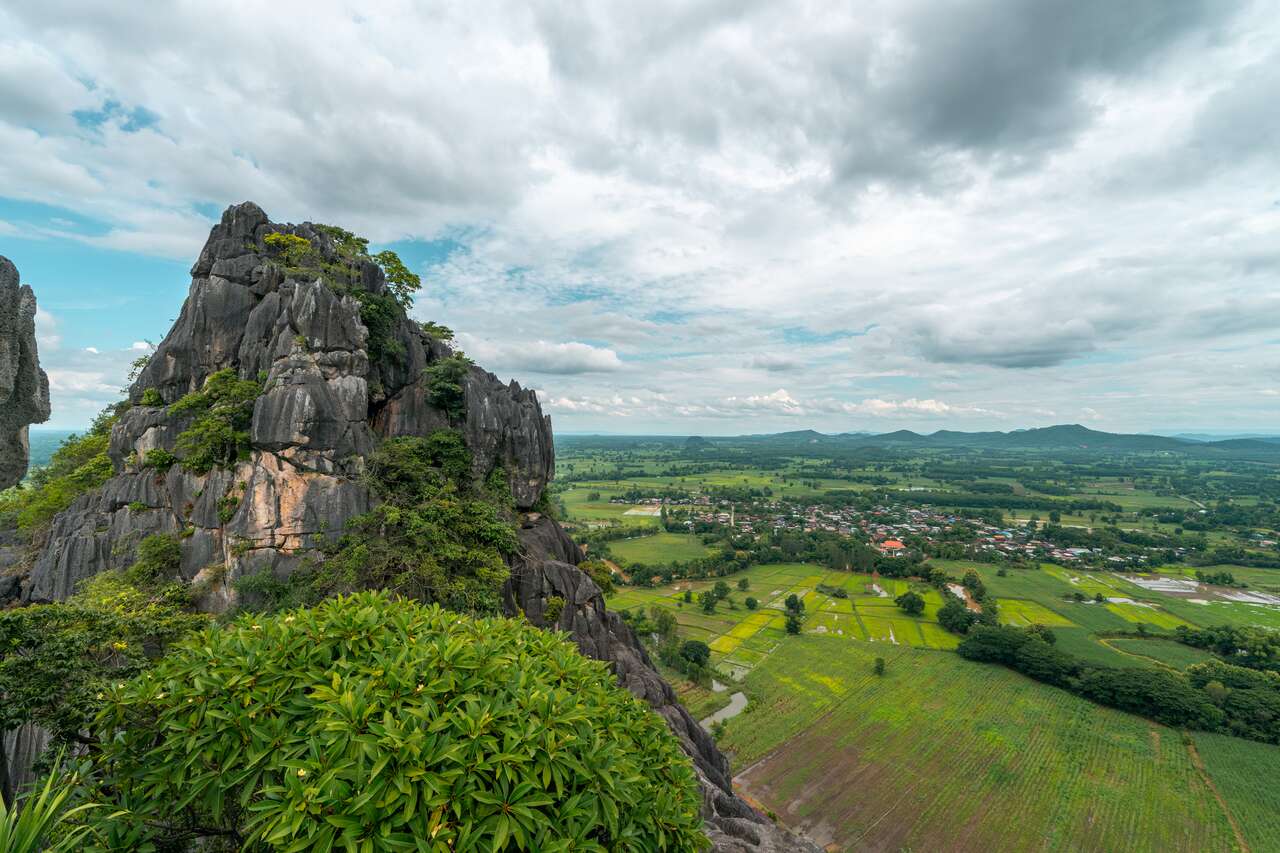 Once you reach the top, you’ll be rewarded with an incredible 360° panoramic view of the surroundings, endless plains of rice fields stretching to the horizon, dotted with towns, villages, and rugged limestone mountains scattered across Nong Bua Lamphu. It’s a sight that will truly take your breath away!