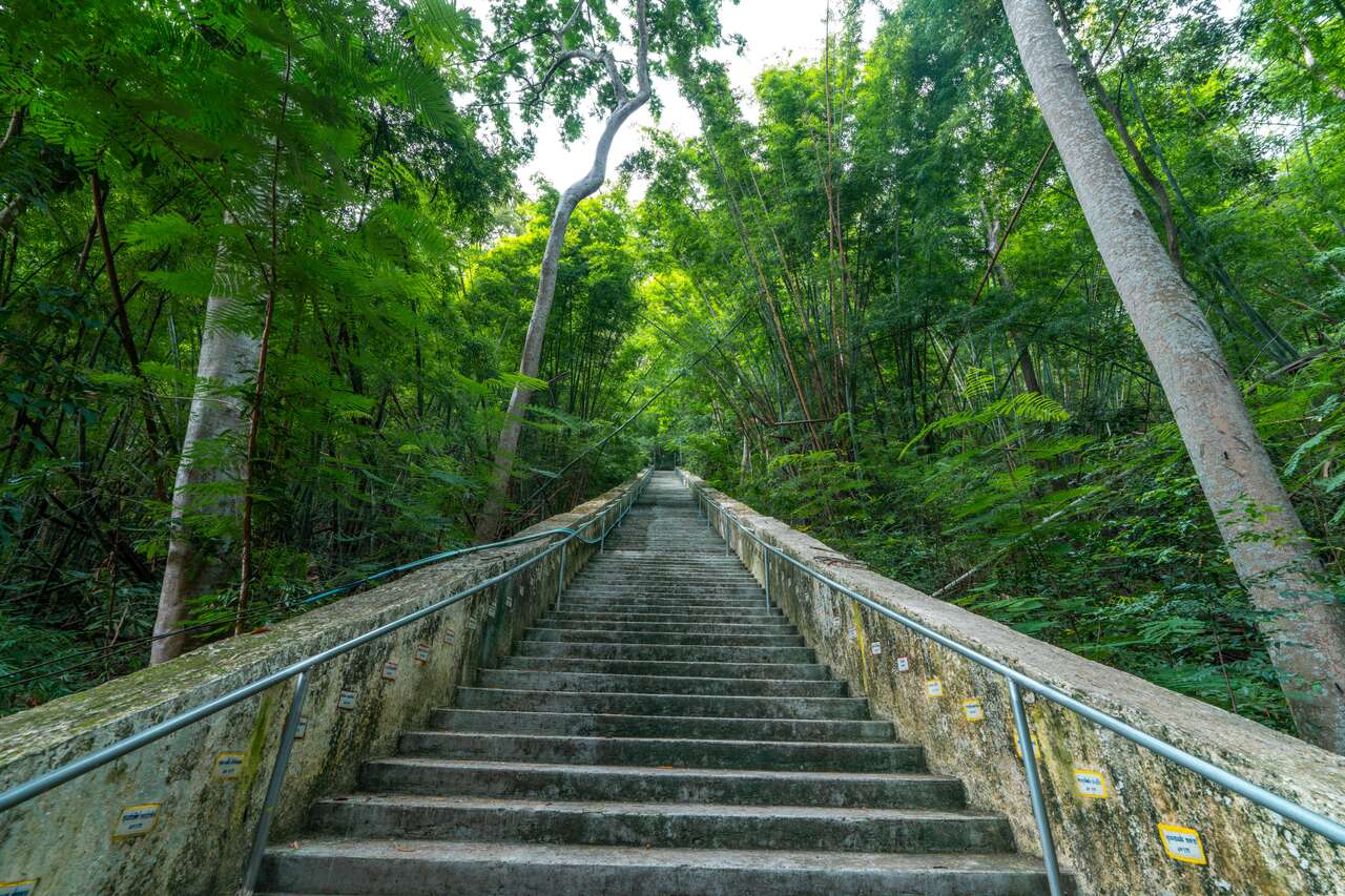 Once checked in, you can start the hike. The trail takes you up around 600 steps, which should take no more than half an hour to reach the top. It’s a bit steep, but once you’re there, any tiredness instantly fades as you take in the awesome view from the cliff, with the giant Buddha image watching over it all.