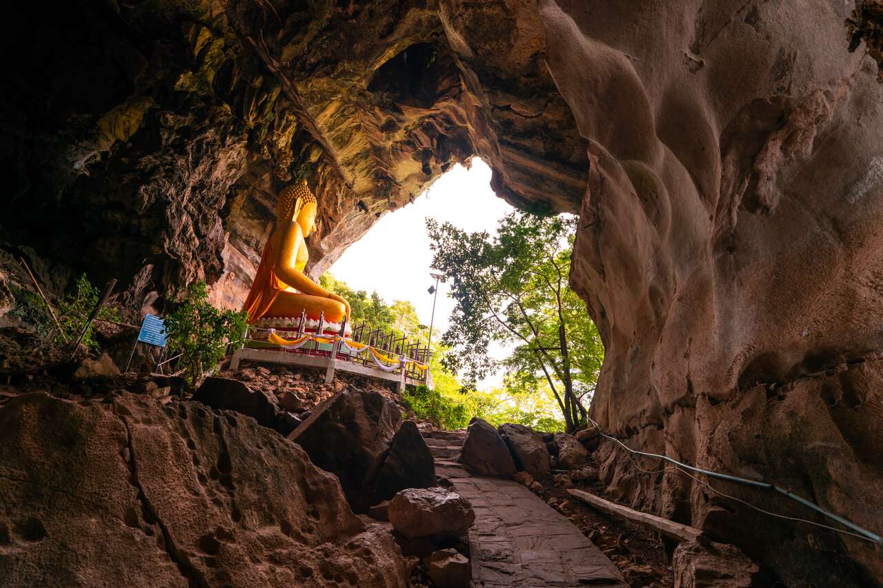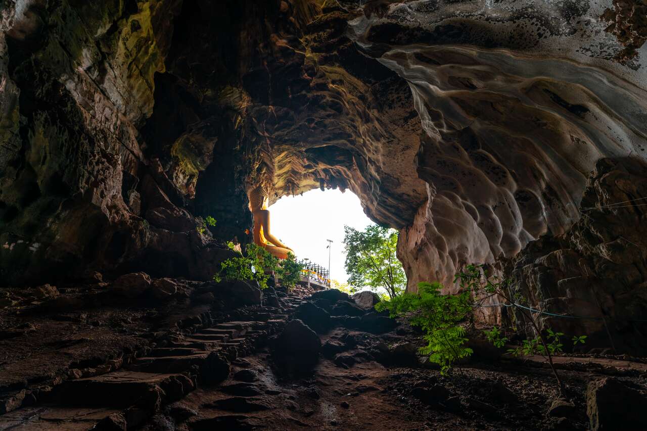 If you think that's done, then you will be surprised to see that there's a whole cave system waiting for you to explore as you arrive at the Buddha Image. Right behind the large image, you will find an entrance to a massive cave with stairs going down even further.
