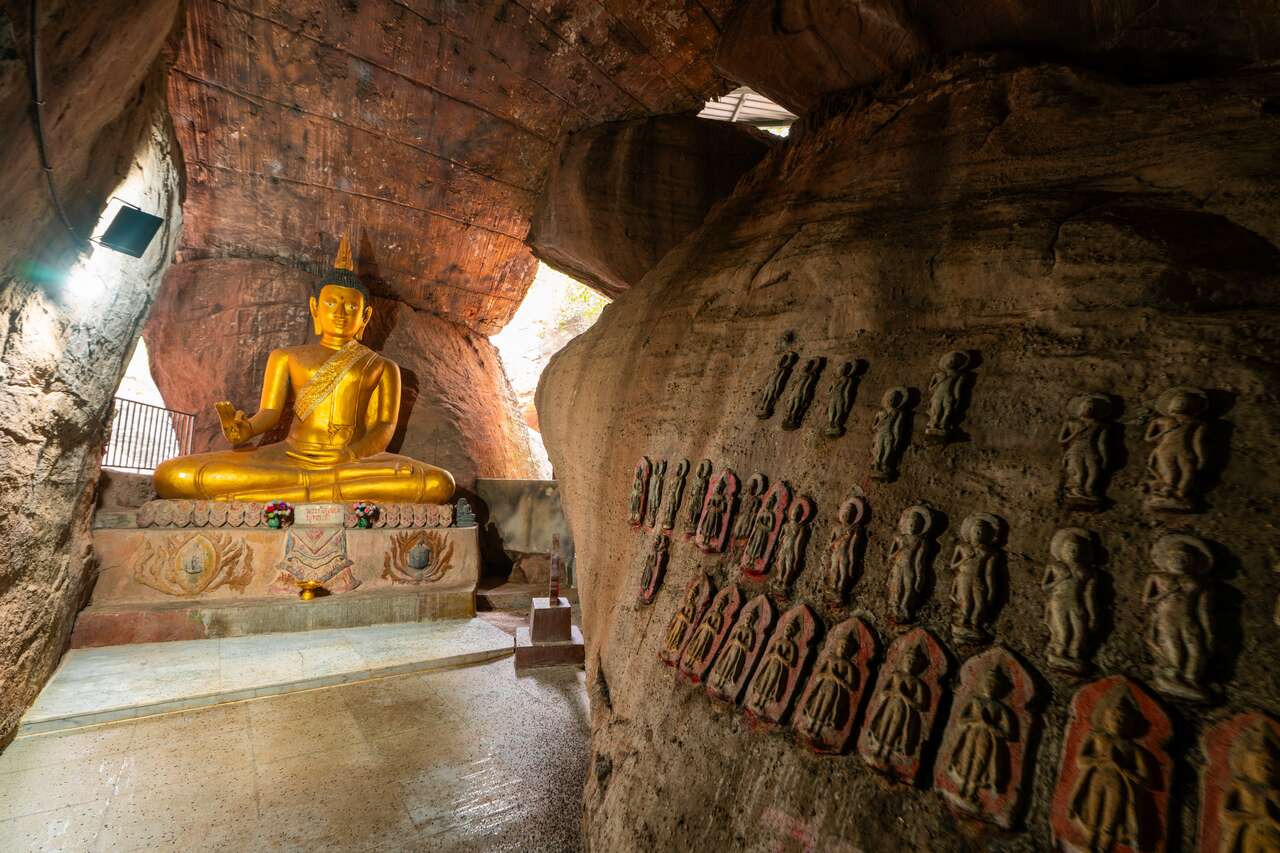 Wat Tham Klong Phle is another cave temple in Nong Bua Lamphu that’s worth a visit. It features intricate Buddha images carved into the rock, a collection of petrified wood, and a peaceful, inviting atmosphere that makes it a lovely place to explore.