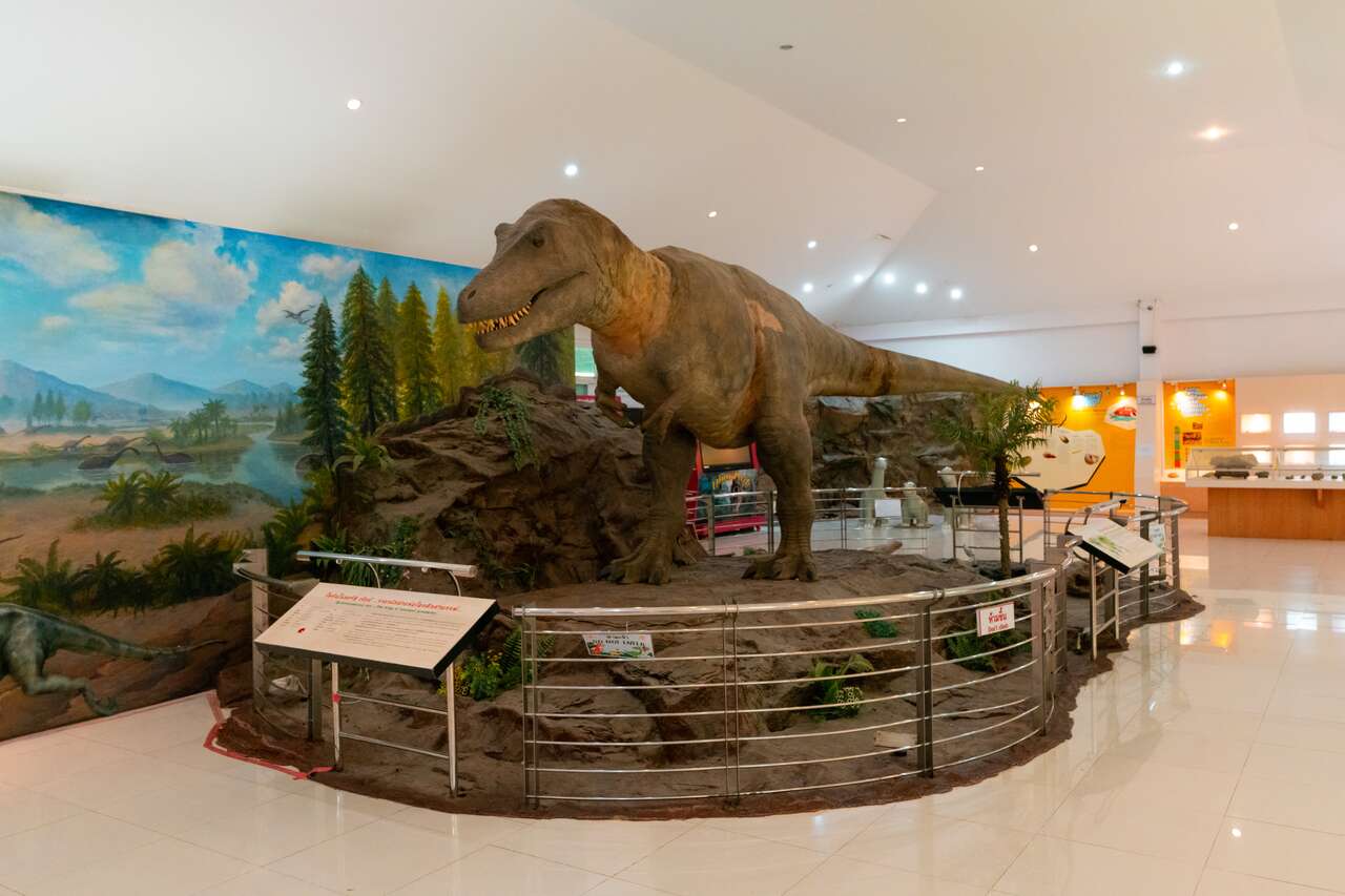 The museum is located inside a park, a lovely shaded area filled with animatronic dinosaurs that are sure to delight the inner child in all of us. The main attraction is inside this building, where you’ll find the most impressive animatronic Tyrannosaurus, featuring the most complex movements of all the animatronics here. It’s definitely worth checking out!