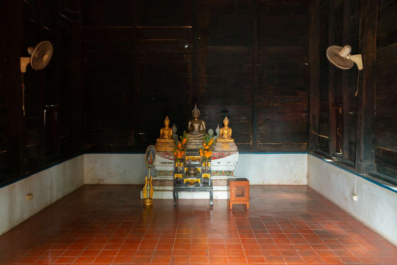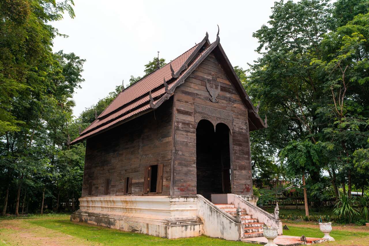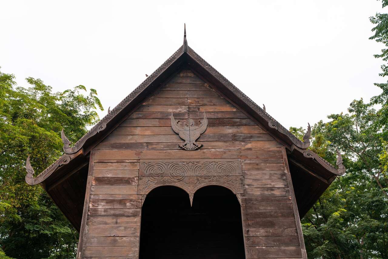 What's cool about this temple is its traditional Isan-style ubosot (ordination hall), which stands out due to its unique wooden construction and intricate carvings. The high roof design not only facilitates natural ventilation but also features ornate gables adorned with delicate depictions of Garudas, mythical bird creatures significant in Thai mythology.