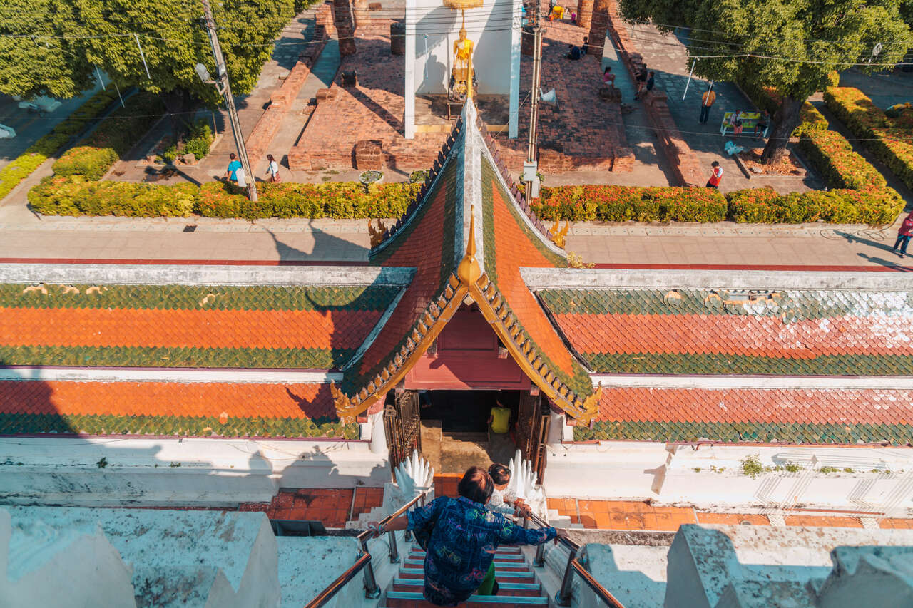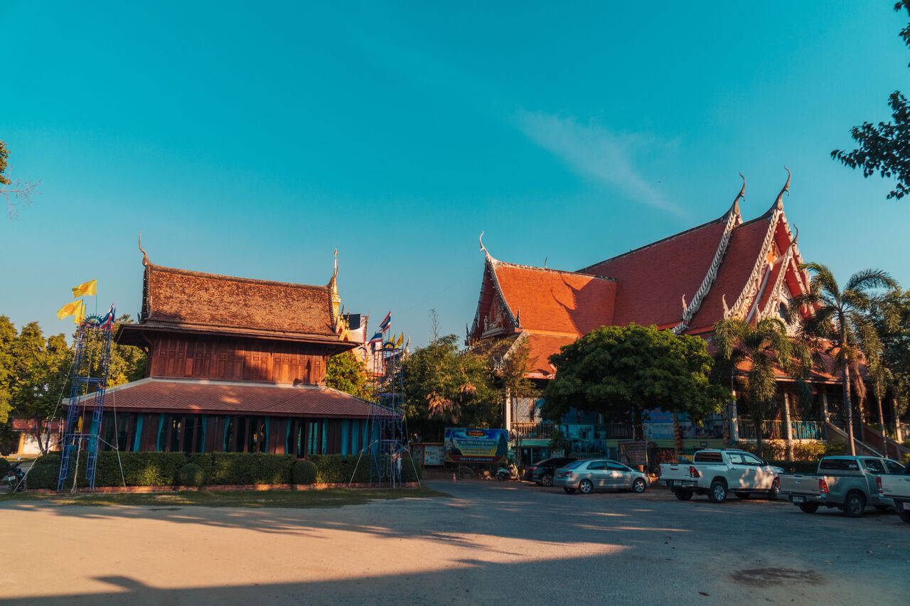 You will find a spacious temple courtyard to walk around, places to sit among the pagodas, and just off across the road, you will see the beautiful Nan River, making it the perfect place to stroll around at sunset.
