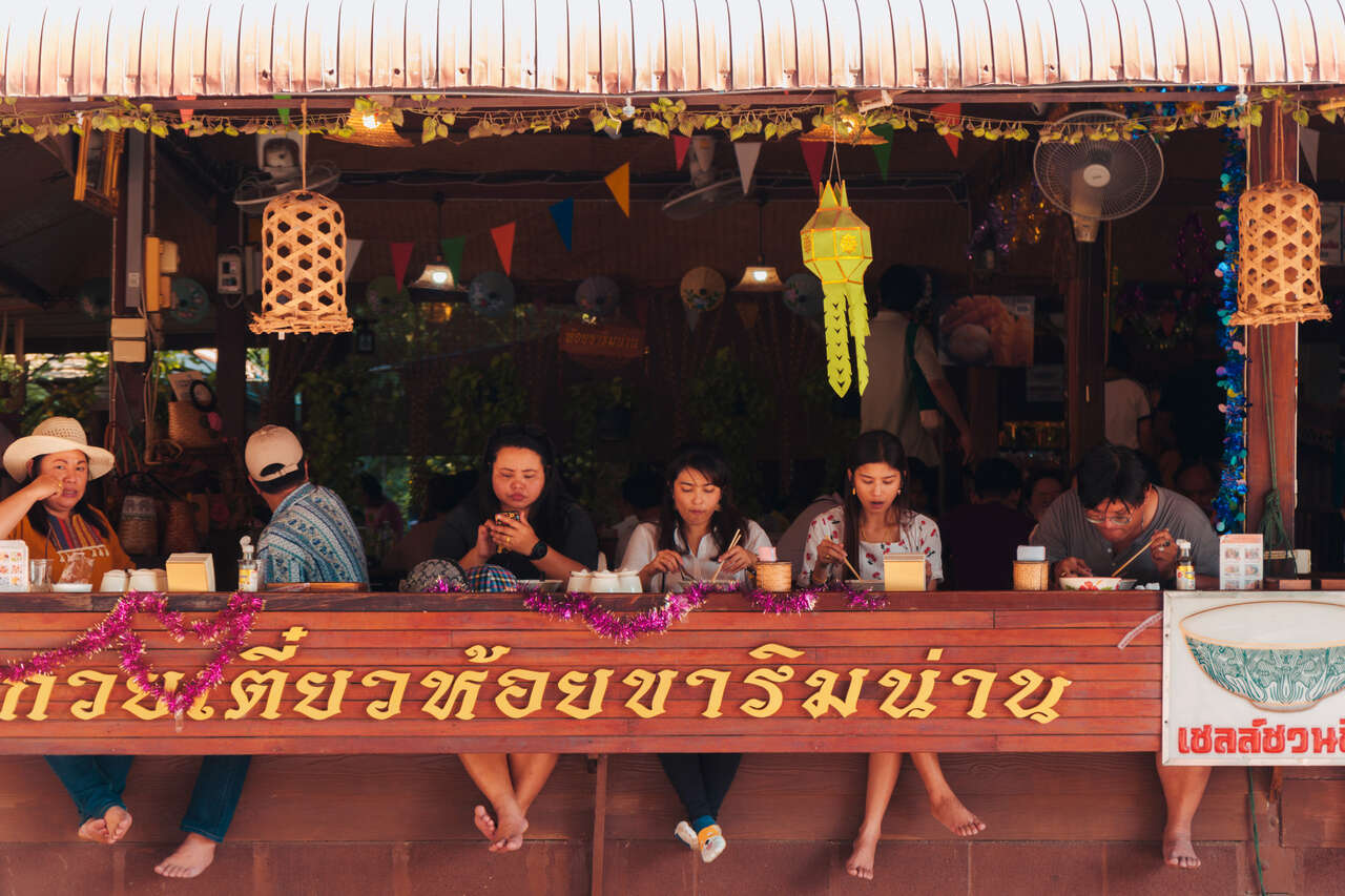 From Pad Thai and Hoi Tod (crisp fried mussel pancake), to meatballs that cost 5 THB per stick, and all kinds of delicious snacks and desserts that you can indulge in all night.