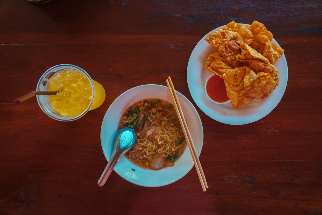 All of this should cost you 85 THB: 35 THB for the noodles, 20 THB for the drink, and 30 THB for the side dish. In my opinion, it is a pretty great deal even compared to Bangkok prices.