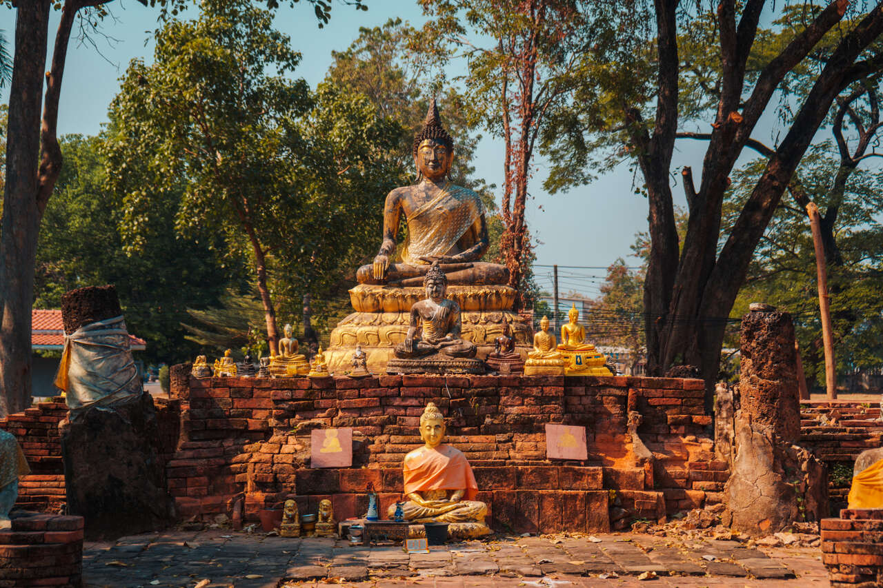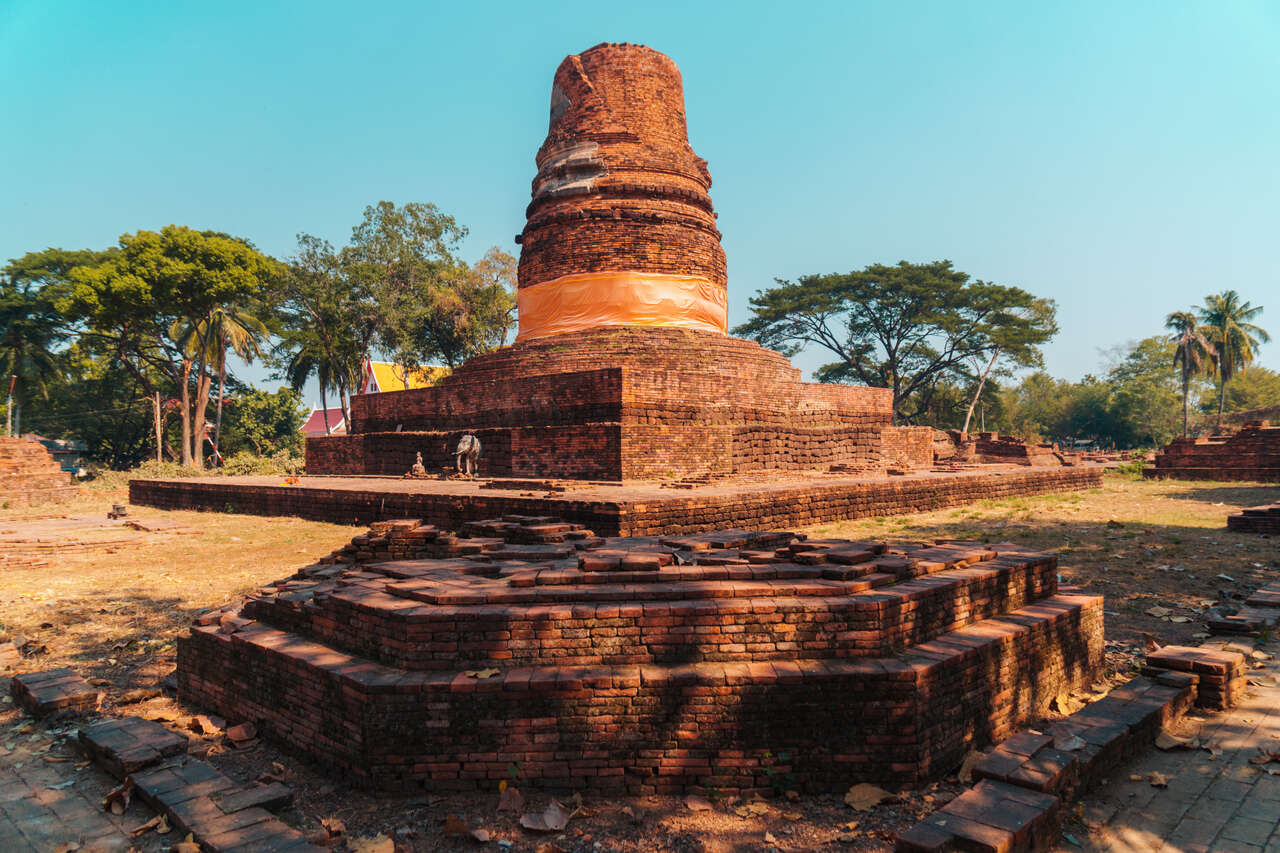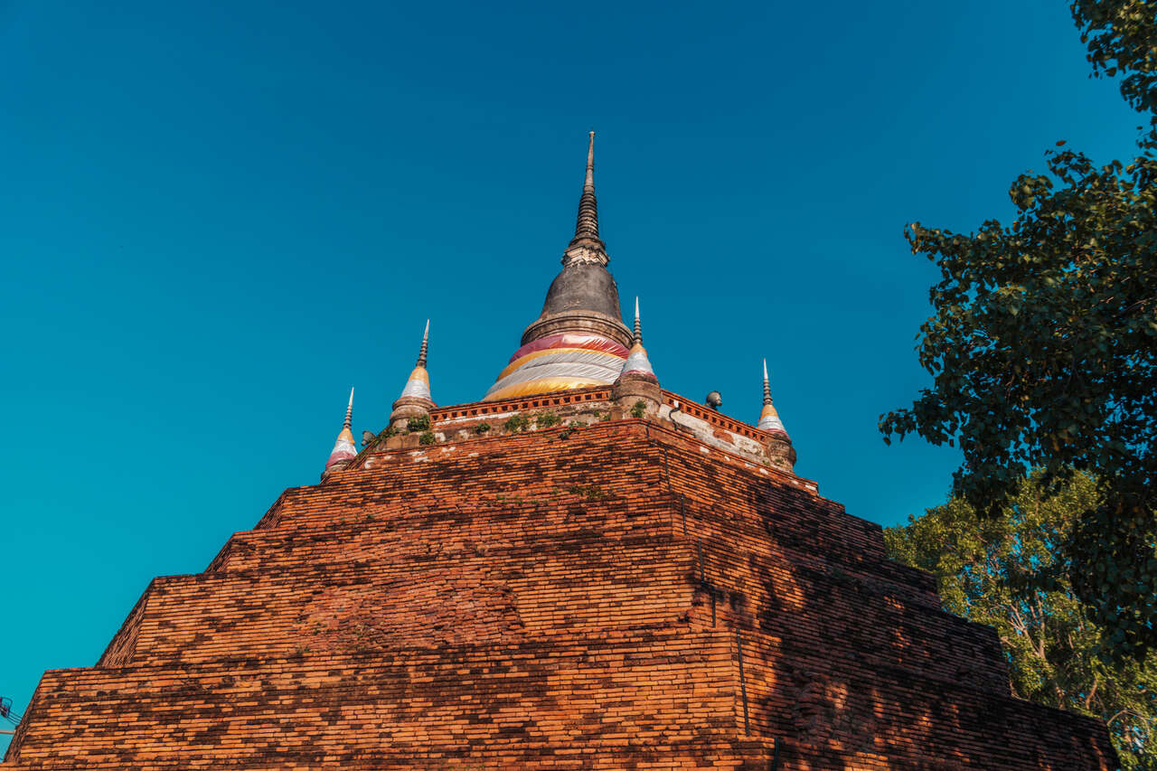 Since that time, the Chedi Luang, an old red brick pagoda located within the Wat Rachaburana temple grounds, is all that remains of the original temple structure.