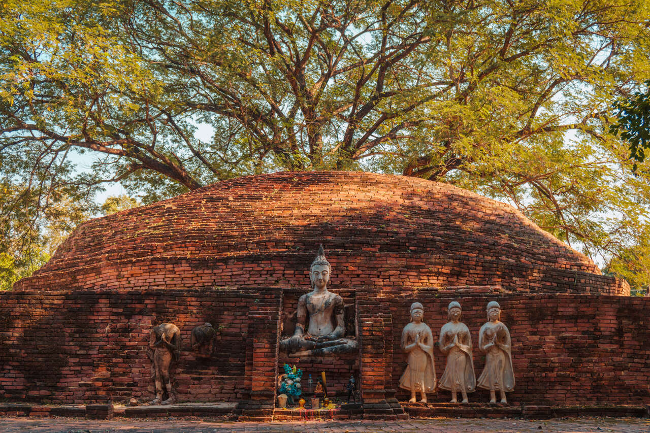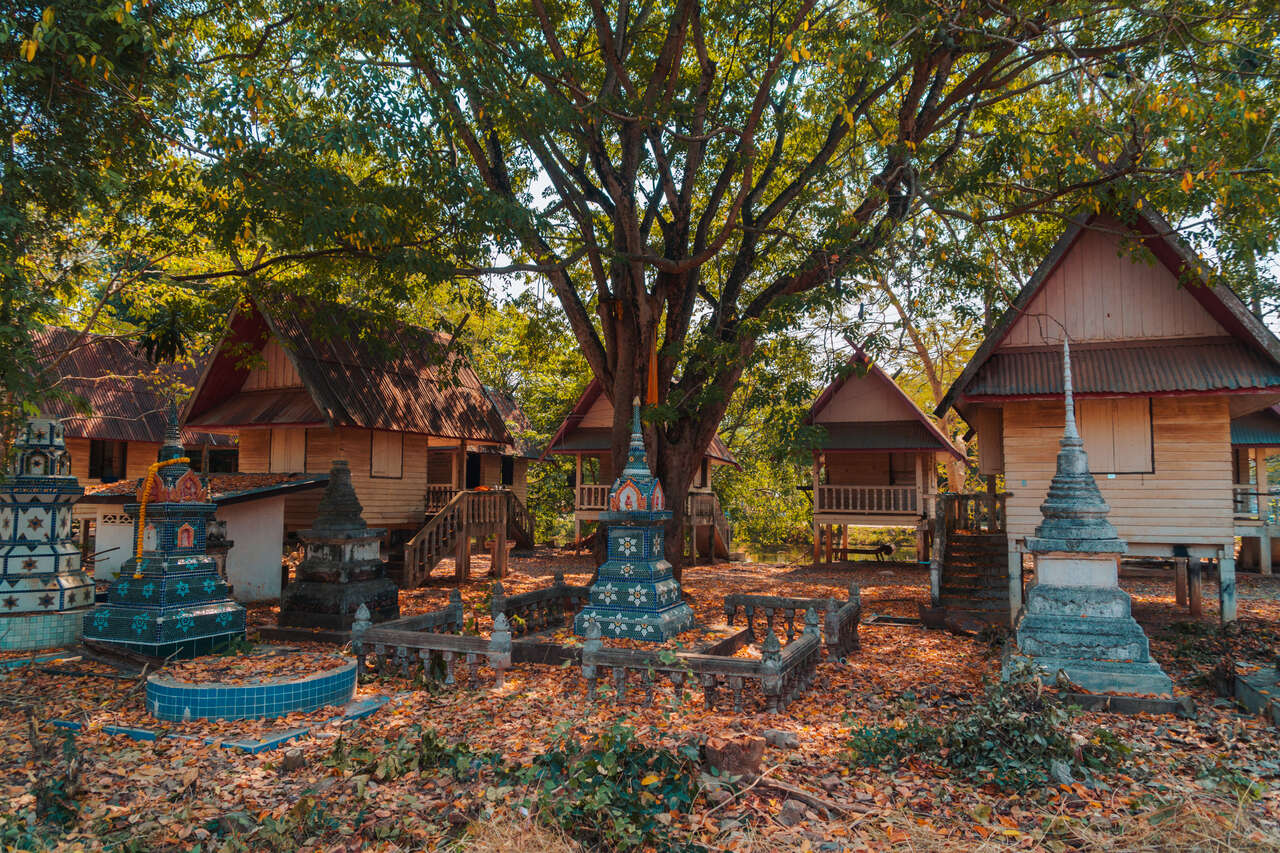 Around the old Chedi, you will also find several old, abandoned ruins, some of which still have a number of Buddha images lying around the altars. You will also see a small batch of wooden houses where the monks live.