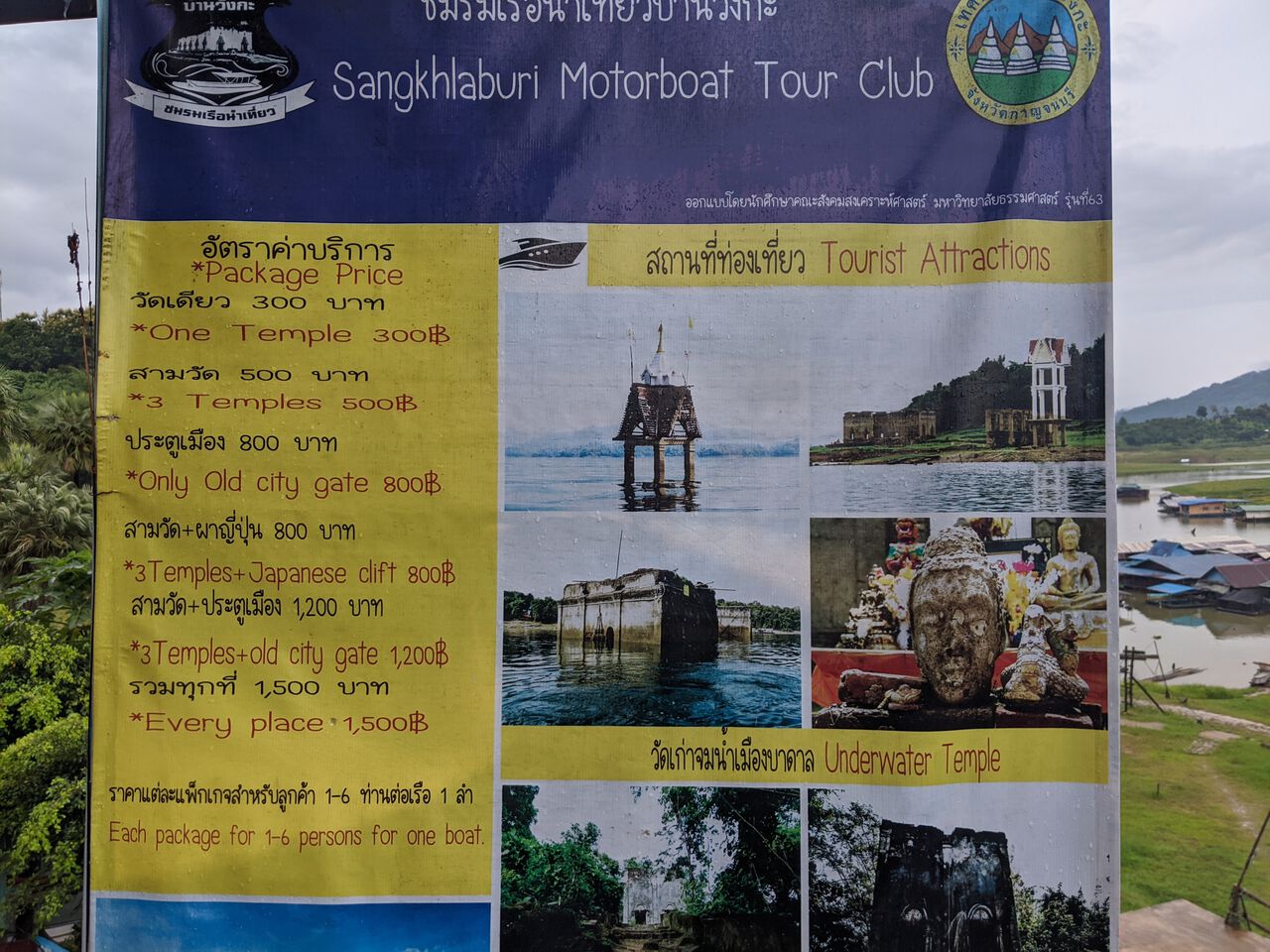The 3 sunken temples boat tour is among the many boat tours you can take in Sangkhlaburi, but this one is by far the most popular one. The tour will take you on a boat to visit the 3 flooded temples: the Karen's Srisuwan Temple, the old Mon's Wat Wang Wiwekaram temple, and the Thai Wat Somdet temple.