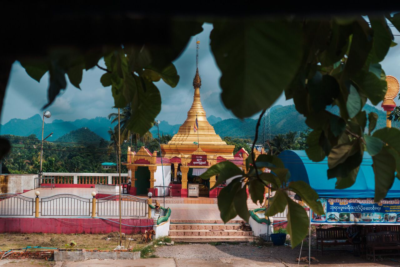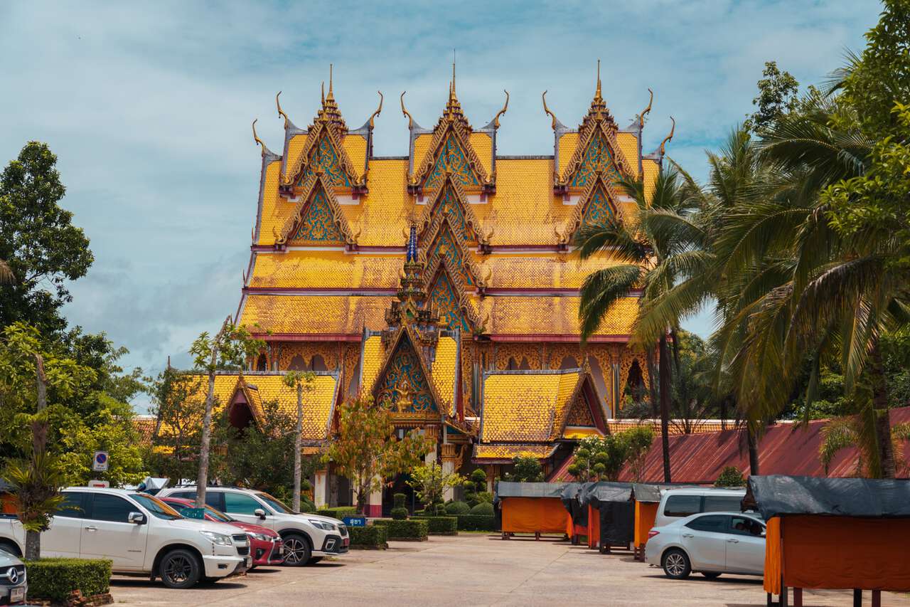 Another temple that you might have seen from the boat tour is the Chedi Phutthakhaya, a tall golden Indian-style pagoda that towers over the Mon Village and the lake. The gold pagoda stands out from the rest of the landscape like a sore thumb. You can't miss it.