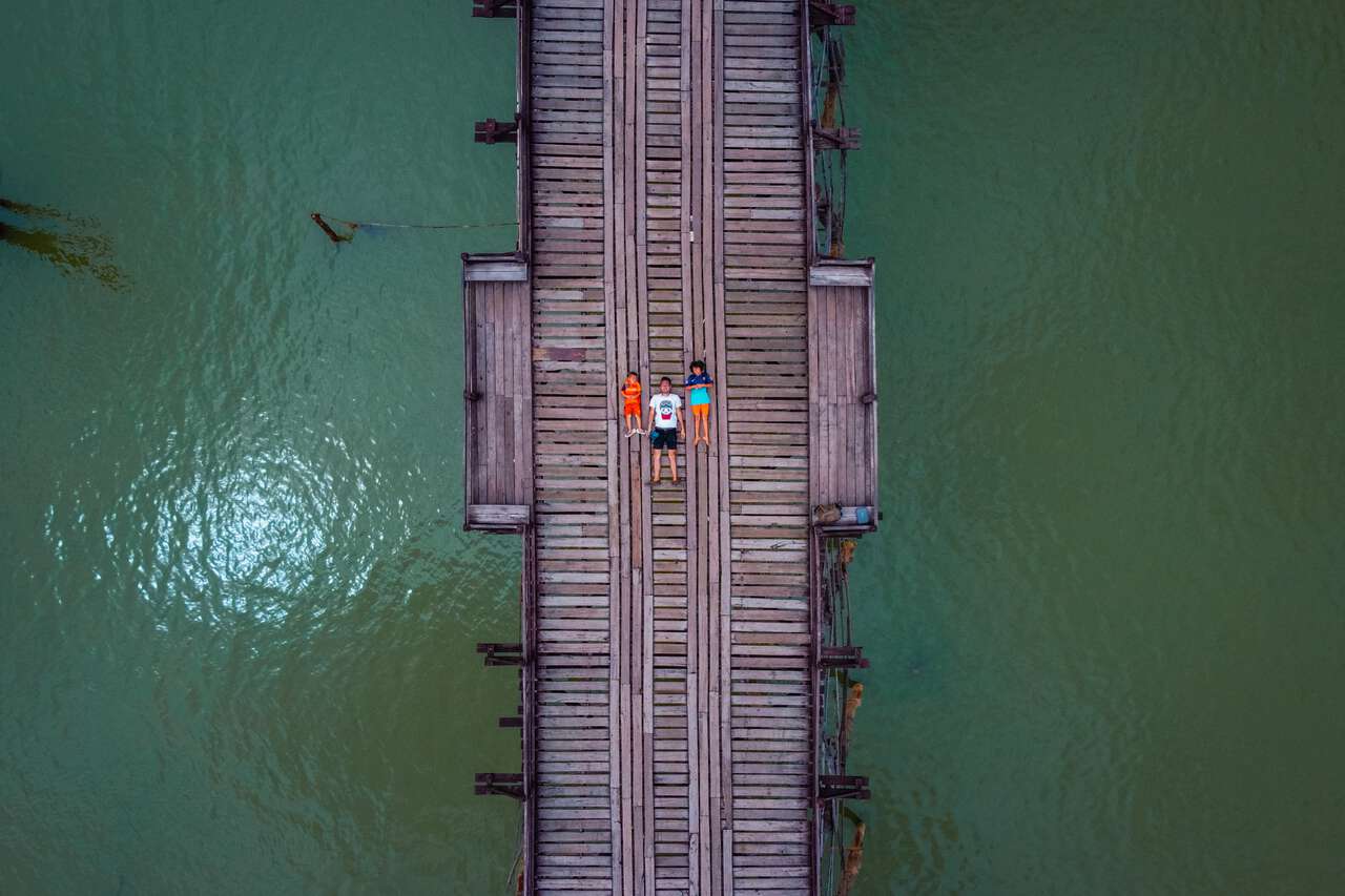 From the Songkalia Bridge, you can capture the entirety of the Mon Bridge without needing a drone, and I believe it is one of the best viewpoints of the Mon Bridge available here.