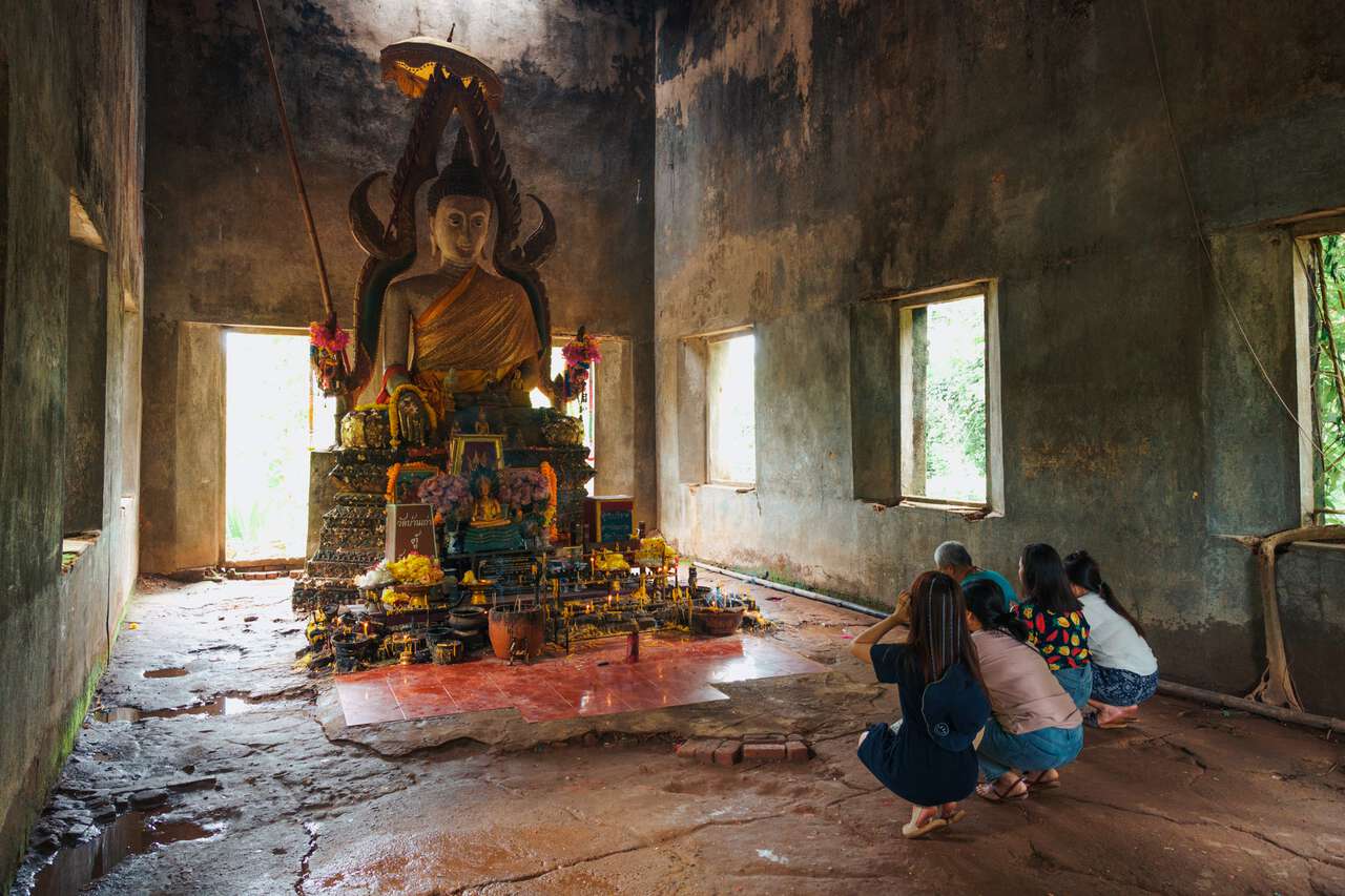 The last temple is the Wat Somdet Thai temple, where you will be able to see an old Buddha image inside the hall. The temple is located a little higher on the hill, which is the reason why the Buddha image is still left intact. You will have to hike up a bit to get to this temple.
