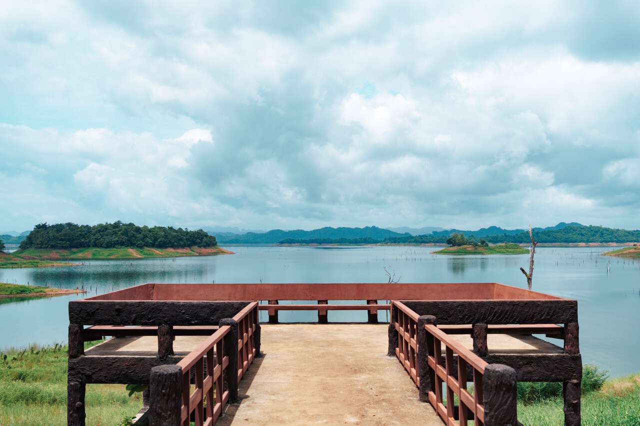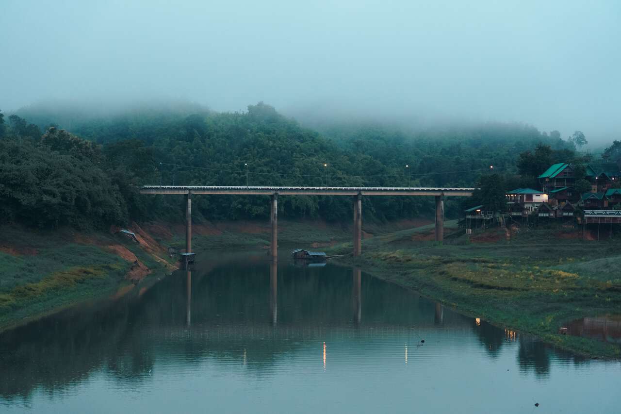After visiting Khao Laem National Park, it's time to head back to Sangkhlaburi. But before you return your scooter and end the day, drive over to Songkalia Bridge, a car bridge that parallels the Mon Bridge, for a great view of the wooden bridge.