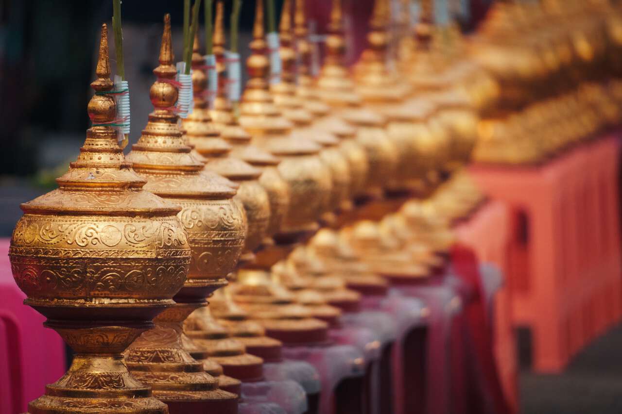 When the monks arrive, you perform the "Wai" greeting to the first monk in line before placing the items you bought into the bowl. Then, you continue to place items as the monks proceed one-by-one. Finally, you "wai" at the end or until you have no more to give. Congratulations, you have finally participated in the Thai tradition of alms-giving!