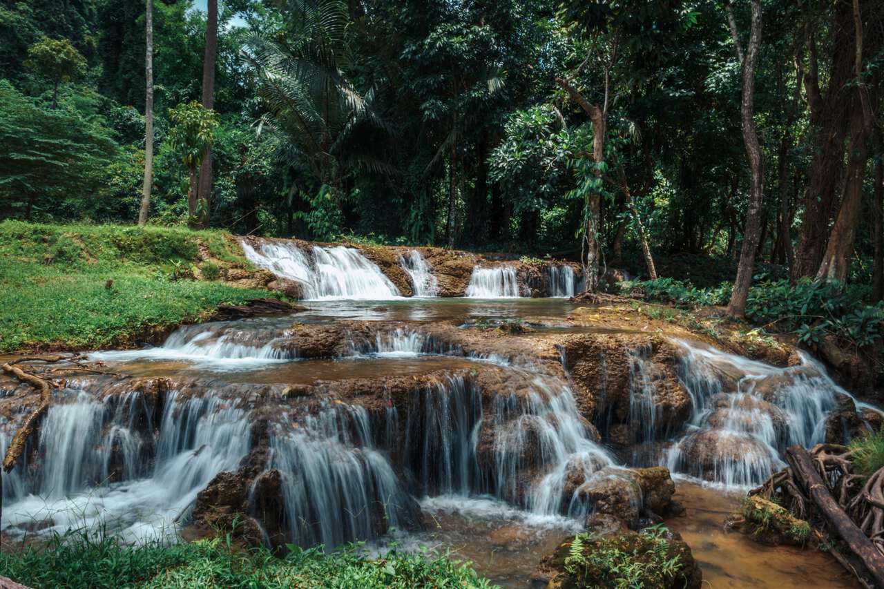 The Kering Kawia waterfall, which you might have seen from the road when you were traveling from Kanchanaburi to Sangkhlaburi, is a beautiful collection of small waterfalls where you can walk around or sit by a nearby cafe and enjoy the view.