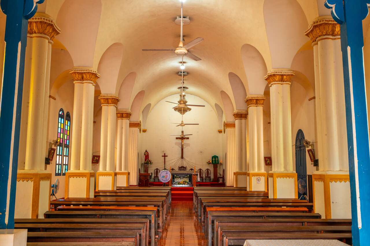 The church is painted a lovely pastel yellow both inside and out, making it stand out among the surrounding buildings. Inside, the interior is cool and inviting, with modest yet elegant décor and a simple altar topped with a cross at the center. If you are exploring Savannakhet, be sure to visit St. Teresa's Catholic Church. It is open daily from 8 AM to 5 PM, and entry is free.
