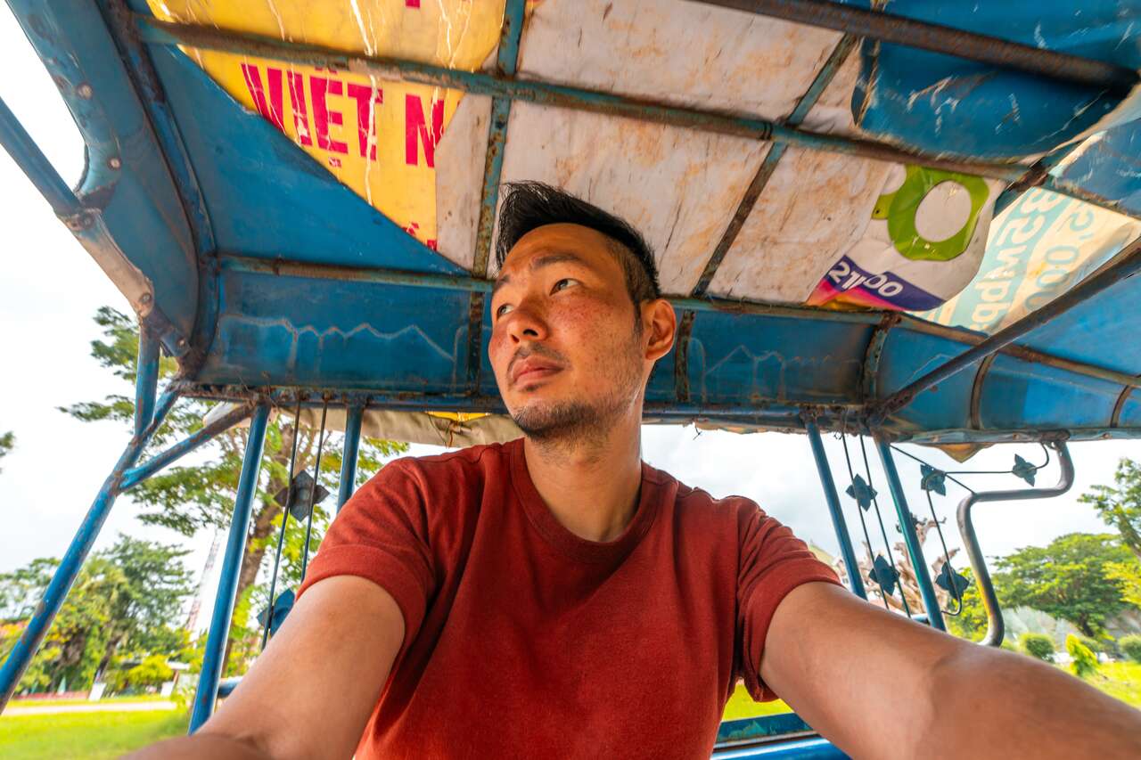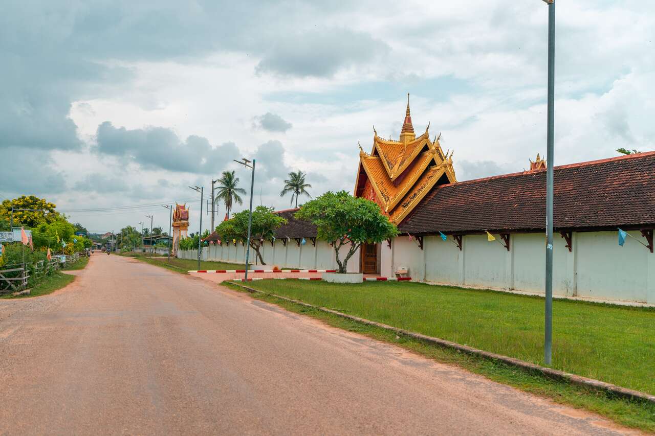 The temple lies about a 30-minute drive from the city center, longer if you’re traveling by Sam Lor, which is extremely slow, and unfortunately, there aren’t many other transport options. The only motorbike rental place in Savannakhet has since closed, so I ended up hiring a Sam Lor driver I found along this road.
