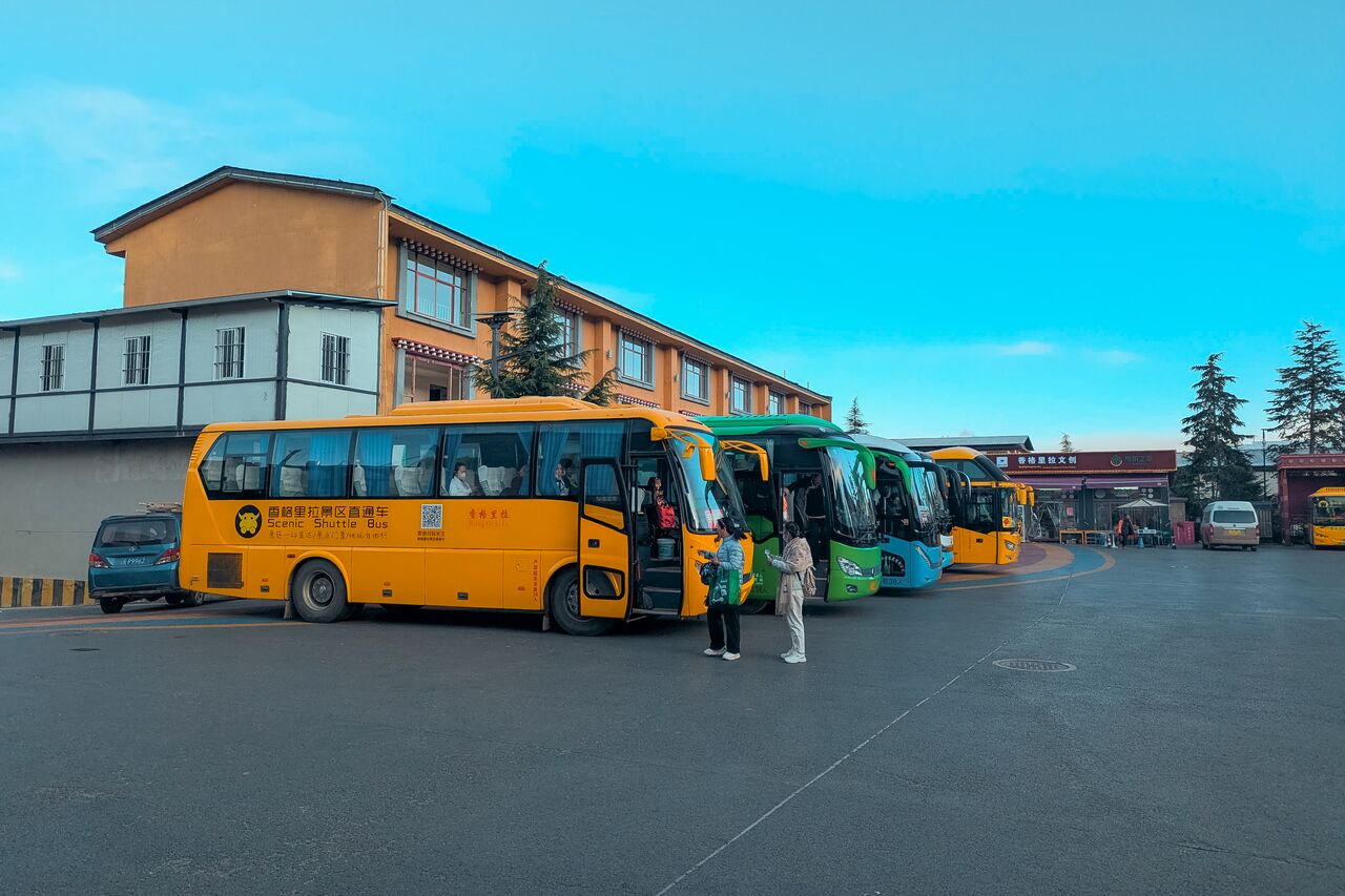 By Bus: For an affordable way to get to Shangri-La, you can also go with long-distance buses. The most common route is from Lijiang, which takes about 4 to 5 hours through mountain roads with beautiful views along the way. There are also buses from Dali and even from the Sichuan side, such as Daocheng, though travel times can be long (6+ hours) and affected by weather. Keep in mind that, to get bus tickets in China as a tourist, you will have to go to the bus station the day before and get the ticket in person.