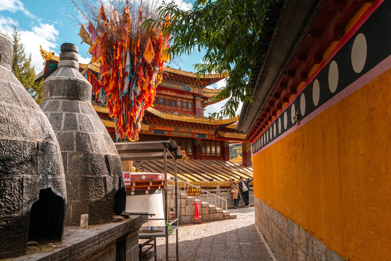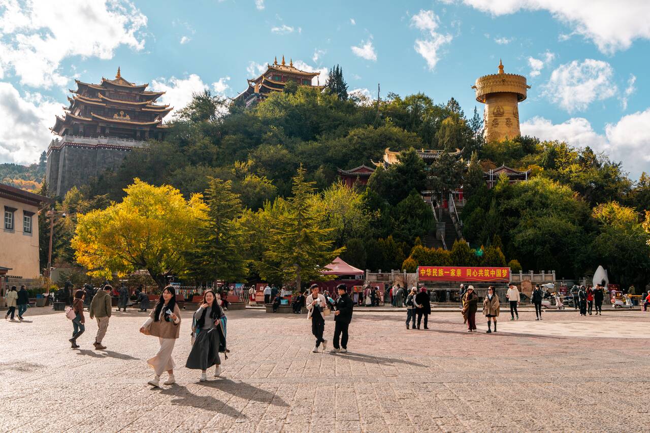 To get here, you will first have to take a Didi taxi to the Songzanlin Monastery Ticket Office and then you can get the ticket at the ticket office for 75 CNY per person. The ticket should also include the shuttle bus taking you to and from the monastery entrance. Once you have the ticket, you can proceed to the shuttle bus and it will take you there in 10 minutes.