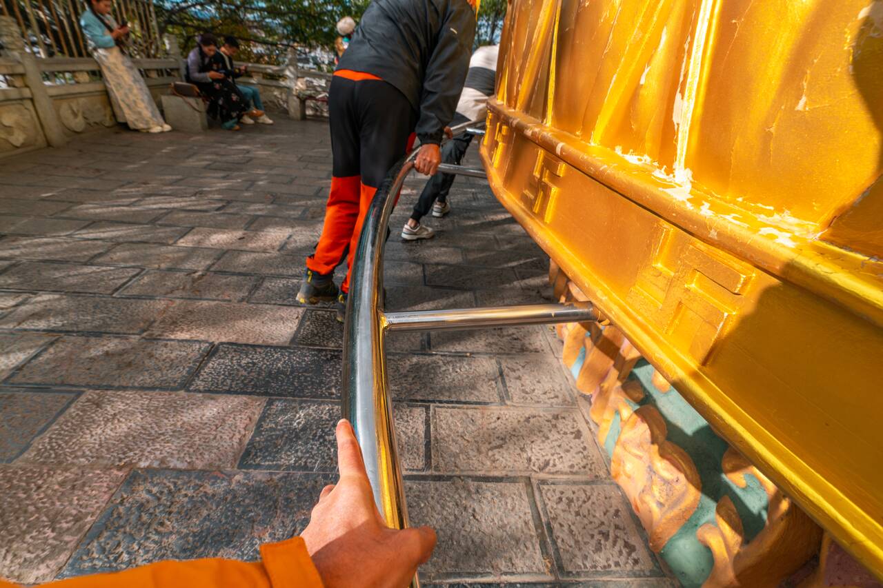 Not just that, right next to the temple, you will also find the massive golden prayer wheel, the largest of its kind, which is another awesome thing to do while here. In order to enter the park, you will have to book a time slot online which you can scan from WeChat app, get yourself registered, pick a time slot, and then you will get a QR code where you can scan to enter the gate and start climbing.