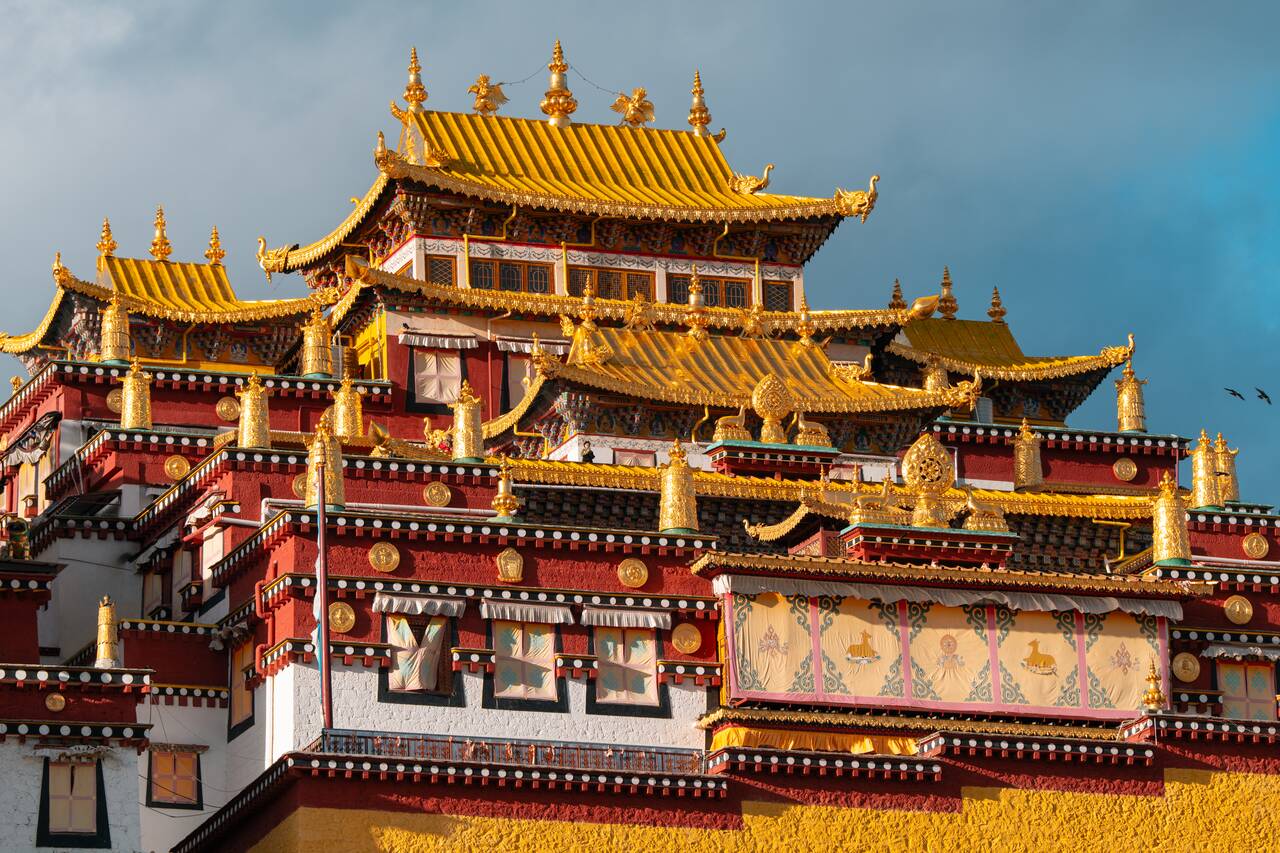 Construction of the monastery began in 1679 and was completed around 1681, under the spiritual guidance of the Fifth Dalai Lama. The architecture is a striking blend of Tibetan fortress style with Han Chinese elements, with its glistening golden roofs and imposing architecture that echo the Potala Palace of Tibet.