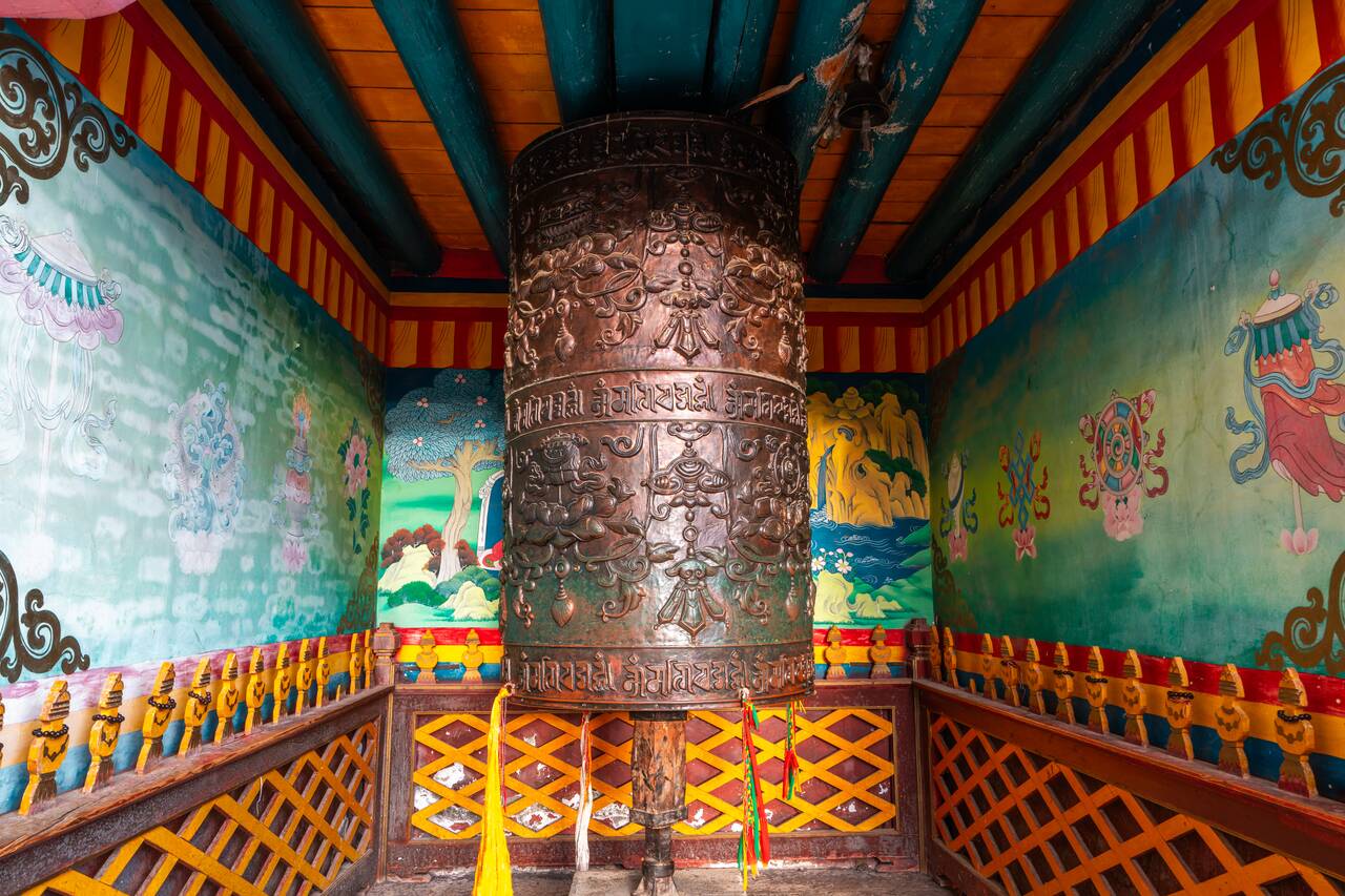 According to traditional belief, one full rotation of the wheel is equivalent to reciting the “Om Mani Padme Hum” mantra 1.24 million times. Three rotations are considered particularly auspicious, believed to bring blessings, peace, and good fortune.