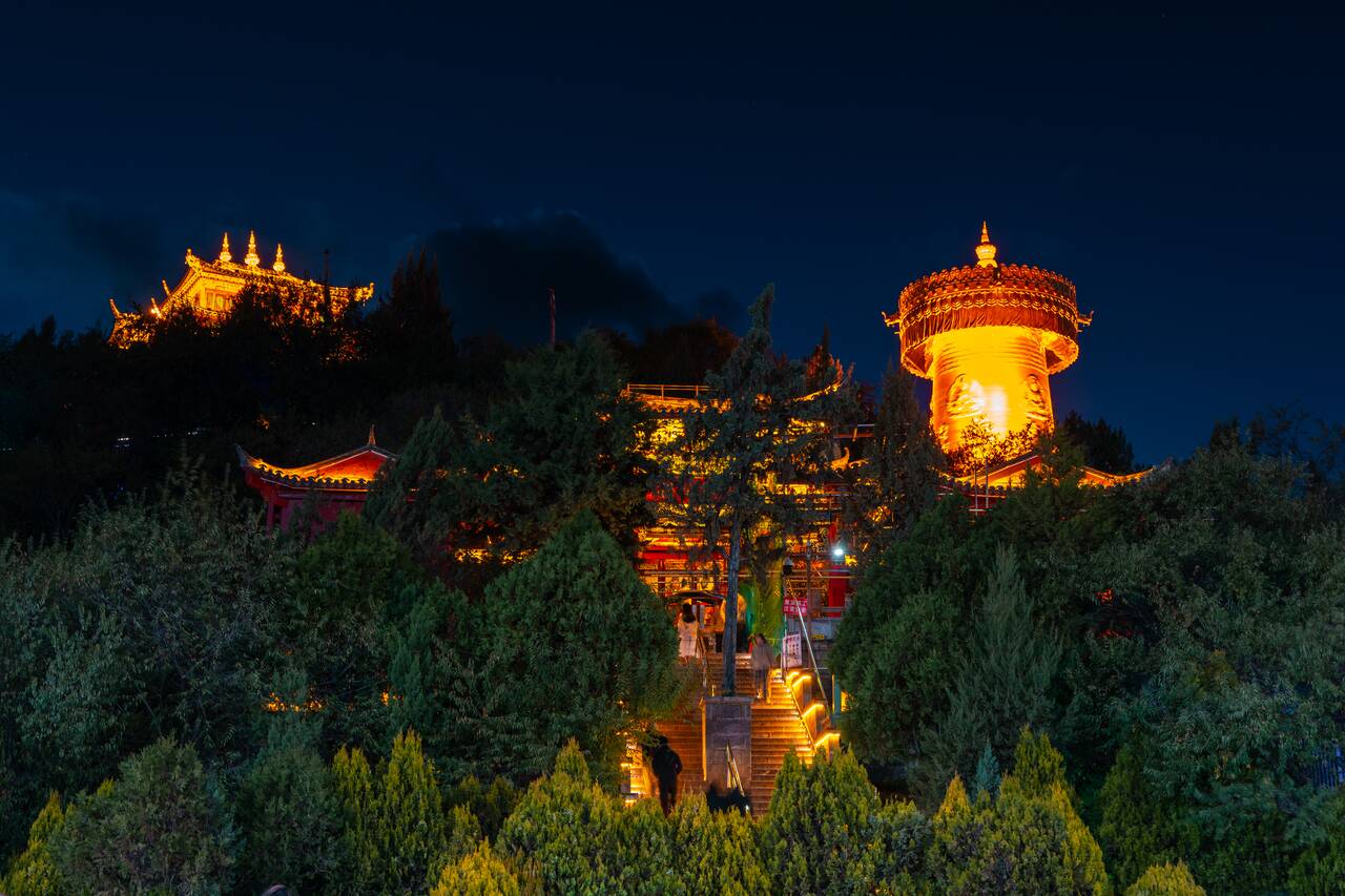 At night, the giant prayer wheel is often illuminated, giving it a radiant, jewel-like glow that creates a magical sight from the hilltop. Be sure to visit both during the day and at night. Since the wheel is part of Dafo Temple, you will need to access the temple via its free time-slot booking app. The temple is open from 7:30 AM to 8:30 PM.
