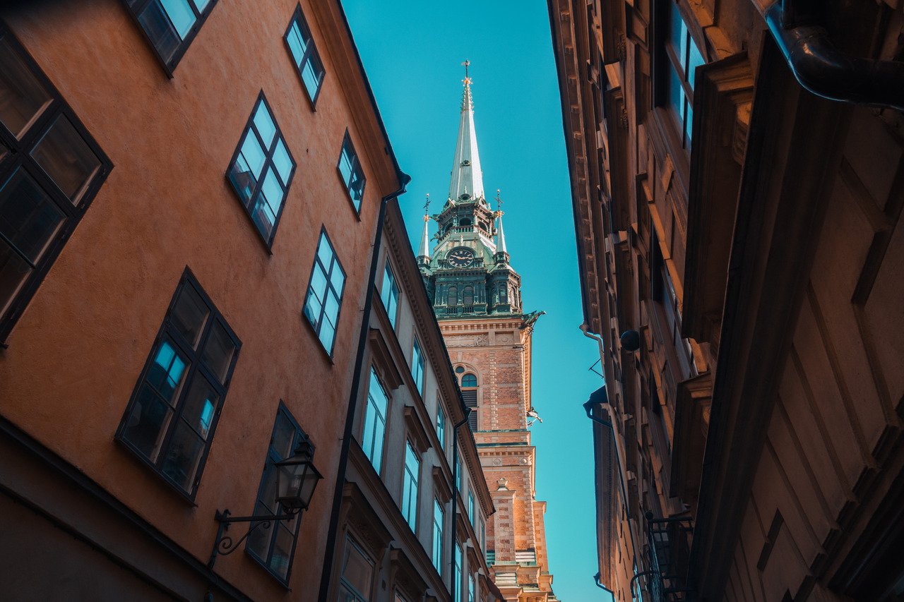 The church is not very big compared to other structures in the old town, but it features a tall bell tower with an impressive spire soaring approximately 85 meters (279 feet) to the sky, making it the highest structure in Gamla Stan. The church is open from 12 PM to 4 PM every day, except on Sundays, and the entrance is free.