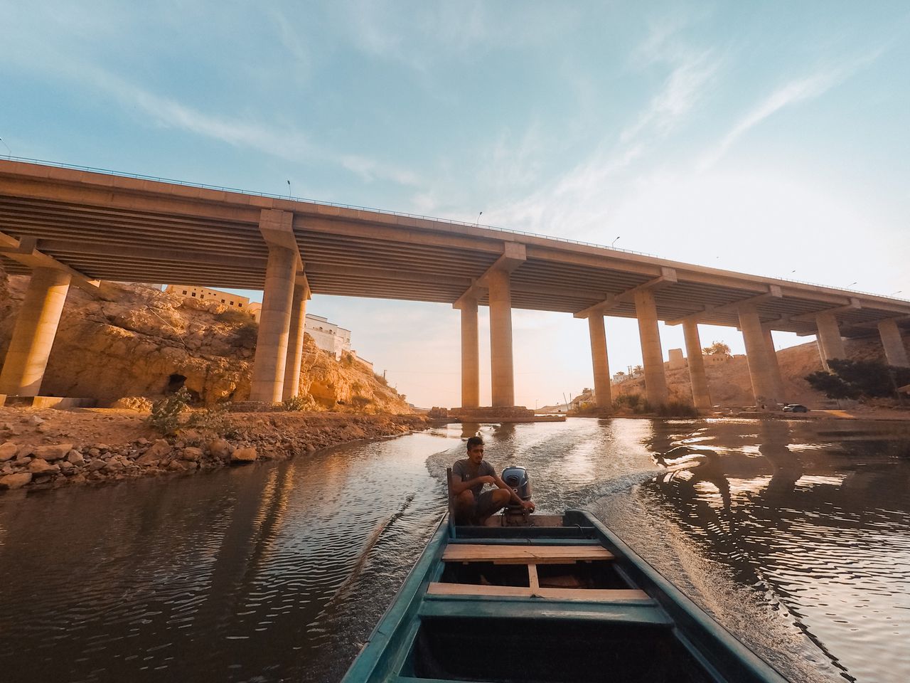 From Sur, you can take an exit to Tiwi and then follow the Wadi Shab sign until you reach the parking lot. From there, you will find a few locals offering a boat ride to the trailhead for 1 OMR (2 ways). The trailhead is just on the opposite side, but the water is too deep to swim (and probably prohibited), so you will have to take the boat.